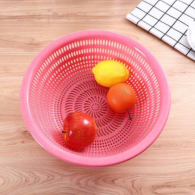 加厚彩色圆形水果蔬菜塑料沥水篮 洗菜篮 水果盘沥水 2元店货 English | 投诉