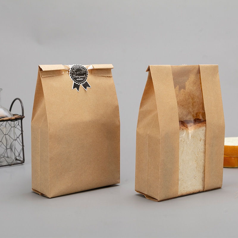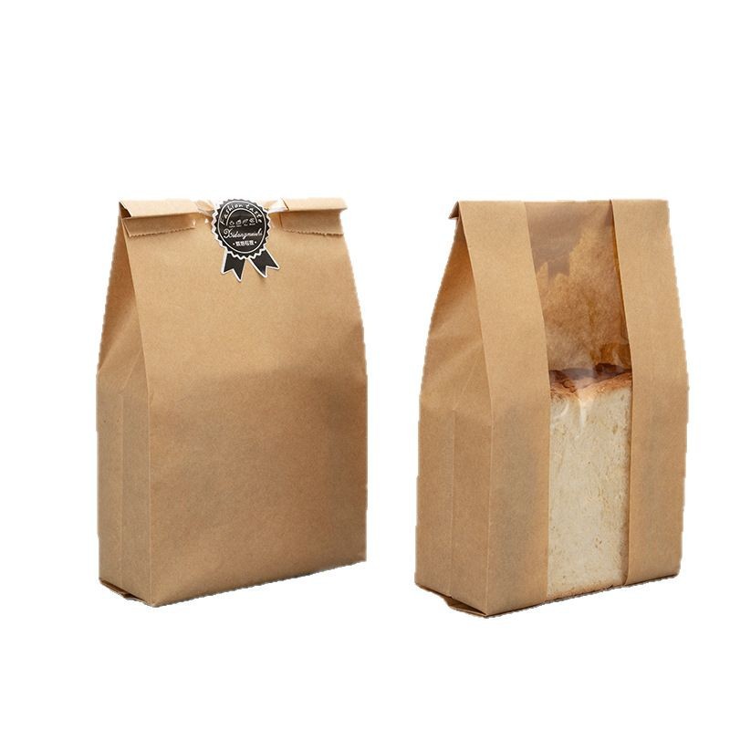 现货开窗面包吐司袋烘焙食品纸袋ins牛皮纸袋土司包装袋子定制