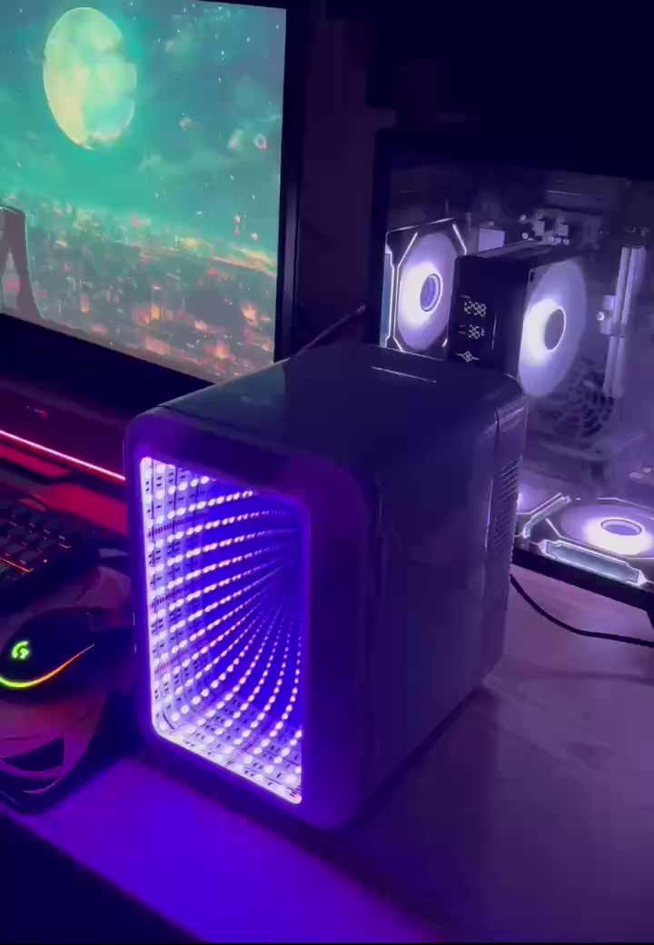 这是一款专为潮玩电竞场景定制的炫彩光影迷你小冰箱。它打破了传统家电的内敛风格,以赛博朋克感的设计语言,成为桌面氛围感拉满的“硬核潮搭”。