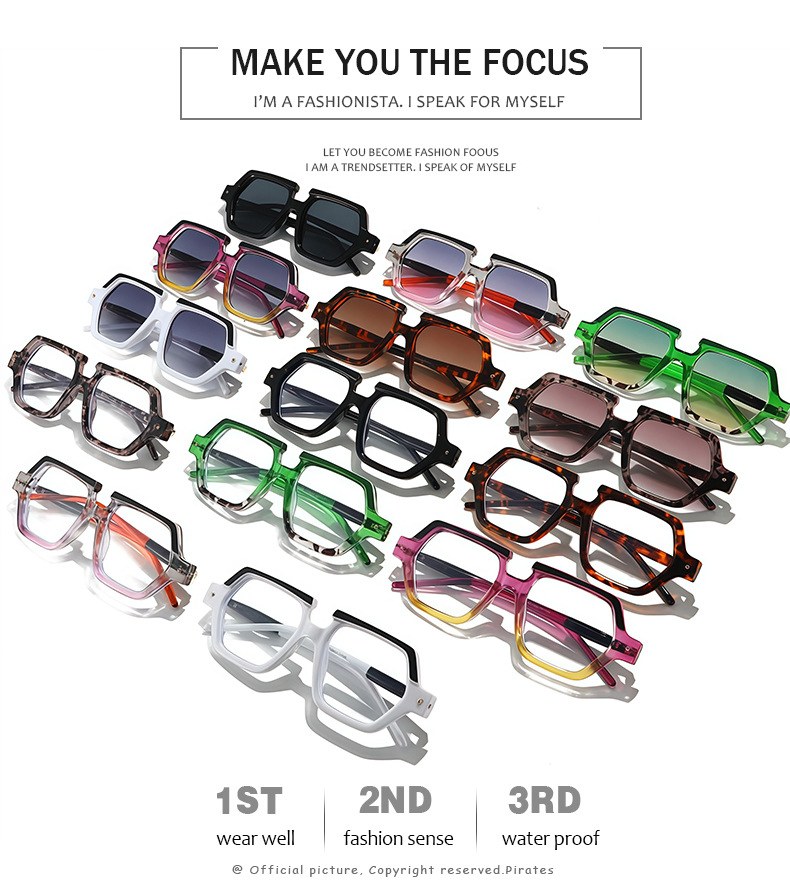 是否偏光: 否 抗UV等级: UV400 镜片材质: PC 品牌: 嘉俊眼镜 眼镜款式: 方框 镜框材质: PC 镜架材质: PC 是否支持近视镜: 不支持近视镜 货号: M6286 镜片颜色: 绿色 镜架颜色: 绿色 透射比分类: 2类/遮阳镜 眼镜结构: 全框 适用场景: 防晒,垂钓,出游,时尚穿搭,派对聚会 上市年份/季节: 2026年春季 是否跨境出口专供货源: 是 颜色: 黑框黑灰片,玳瑁框渐茶片,豹纹框渐茶片, 产地: 台州 风格: 百搭,休闲风,时尚OL,简约 镜片分类: PC镜片 重量: 0.03 kg/副 装箱信息:长宽高:80X28X42cm 装箱重量: 15KG 装箱数量:600pcs
