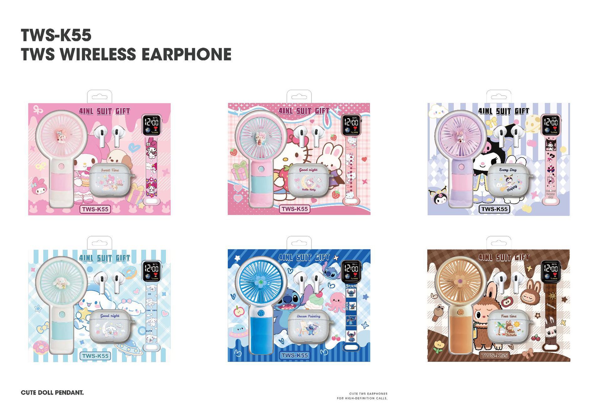 卡通风扇电子手表蓝牙耳机
