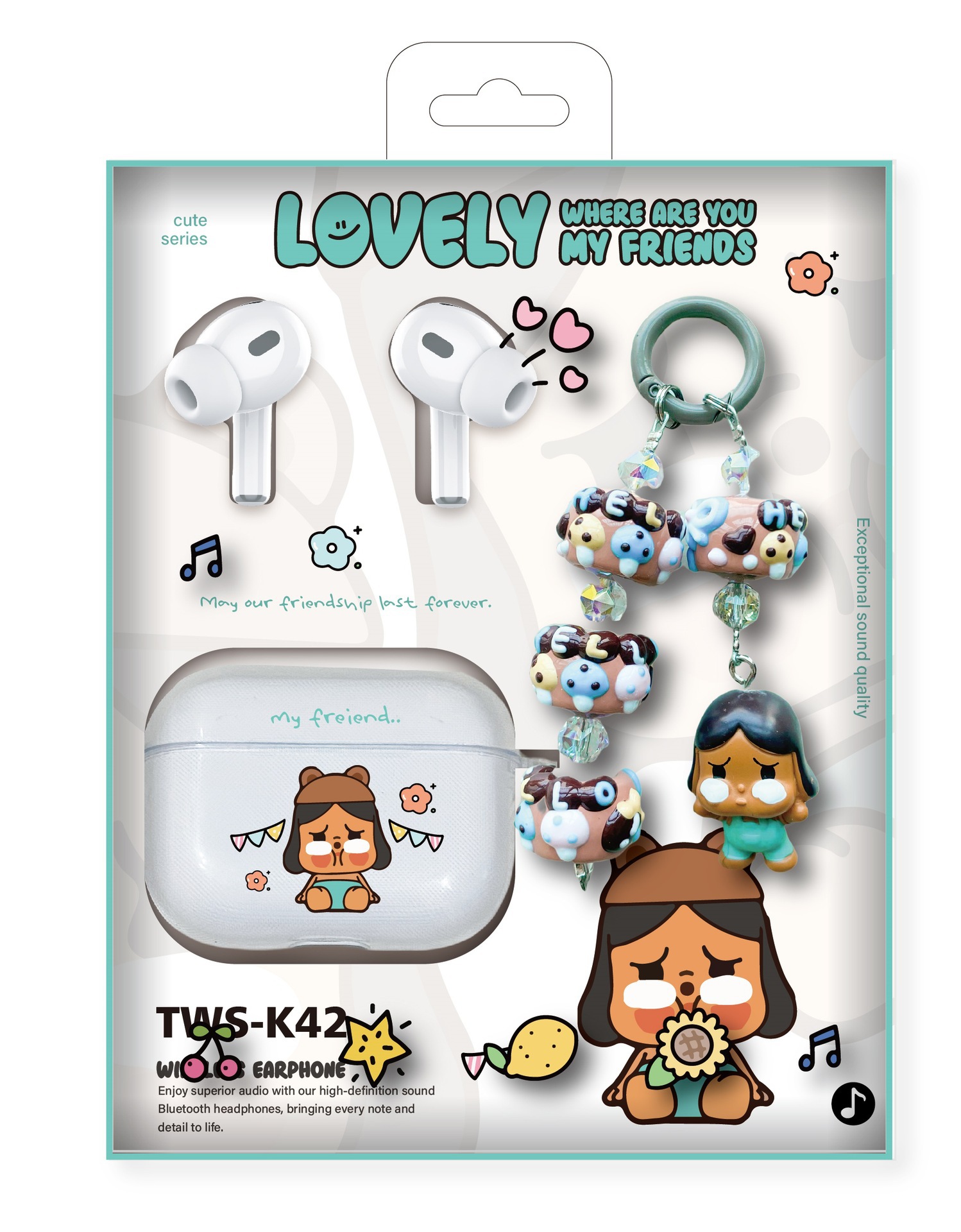 卡通挂珠蓝牙耳机