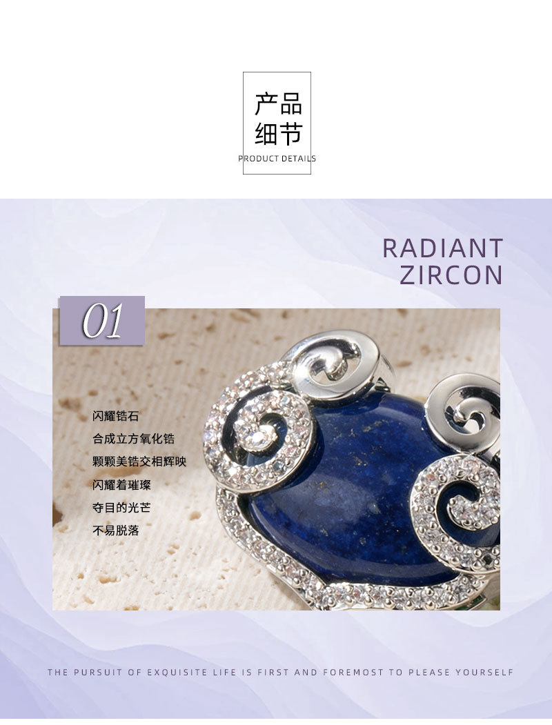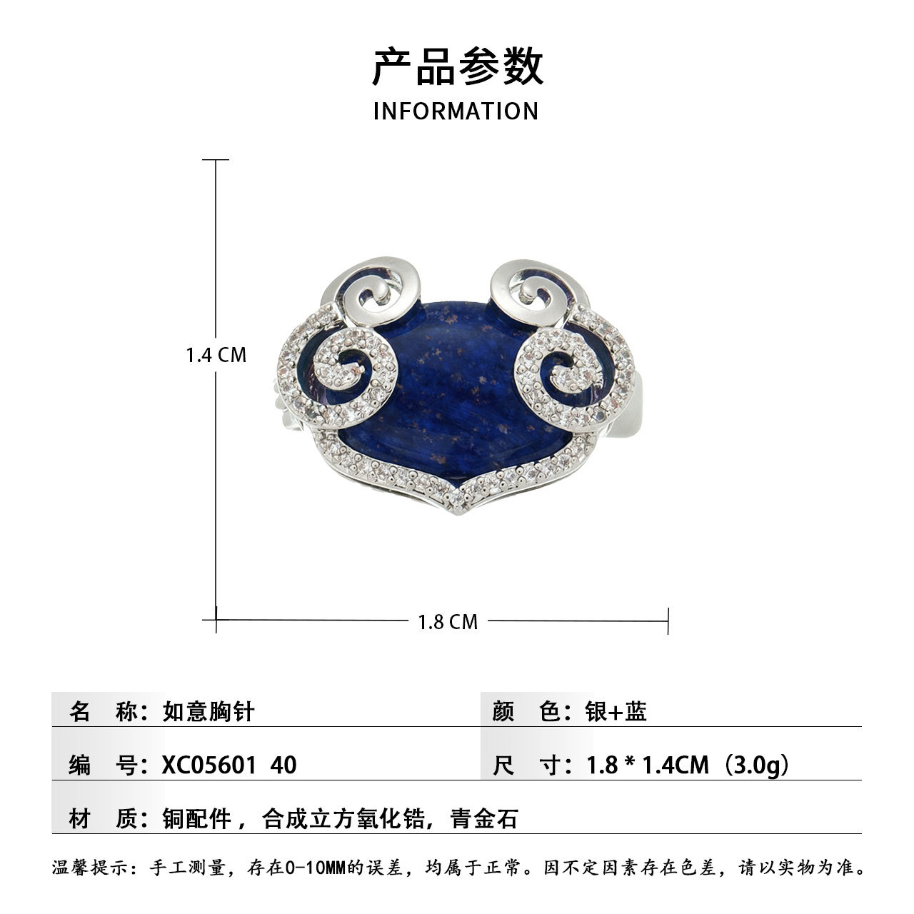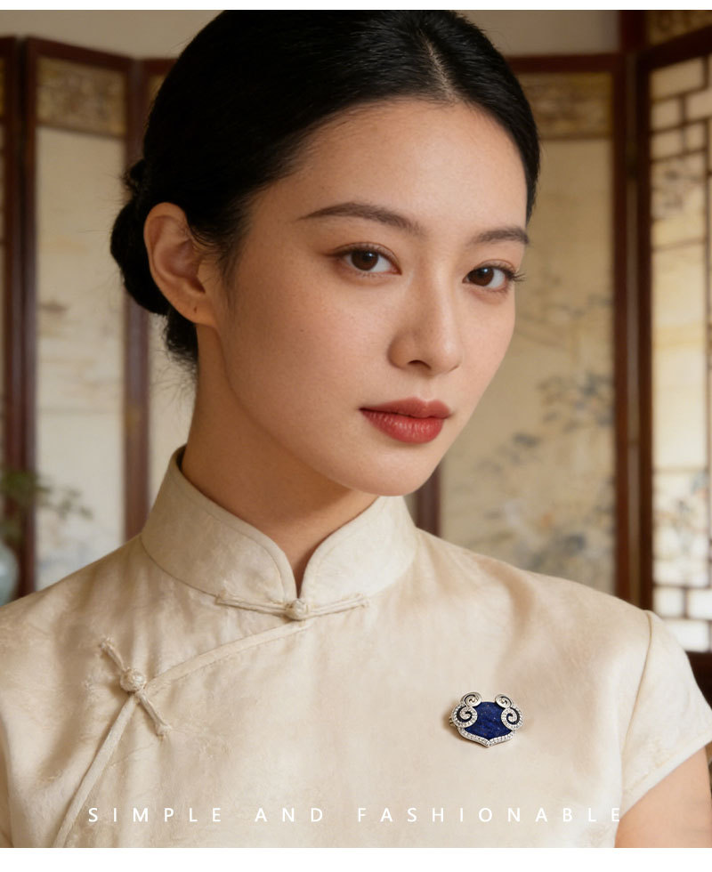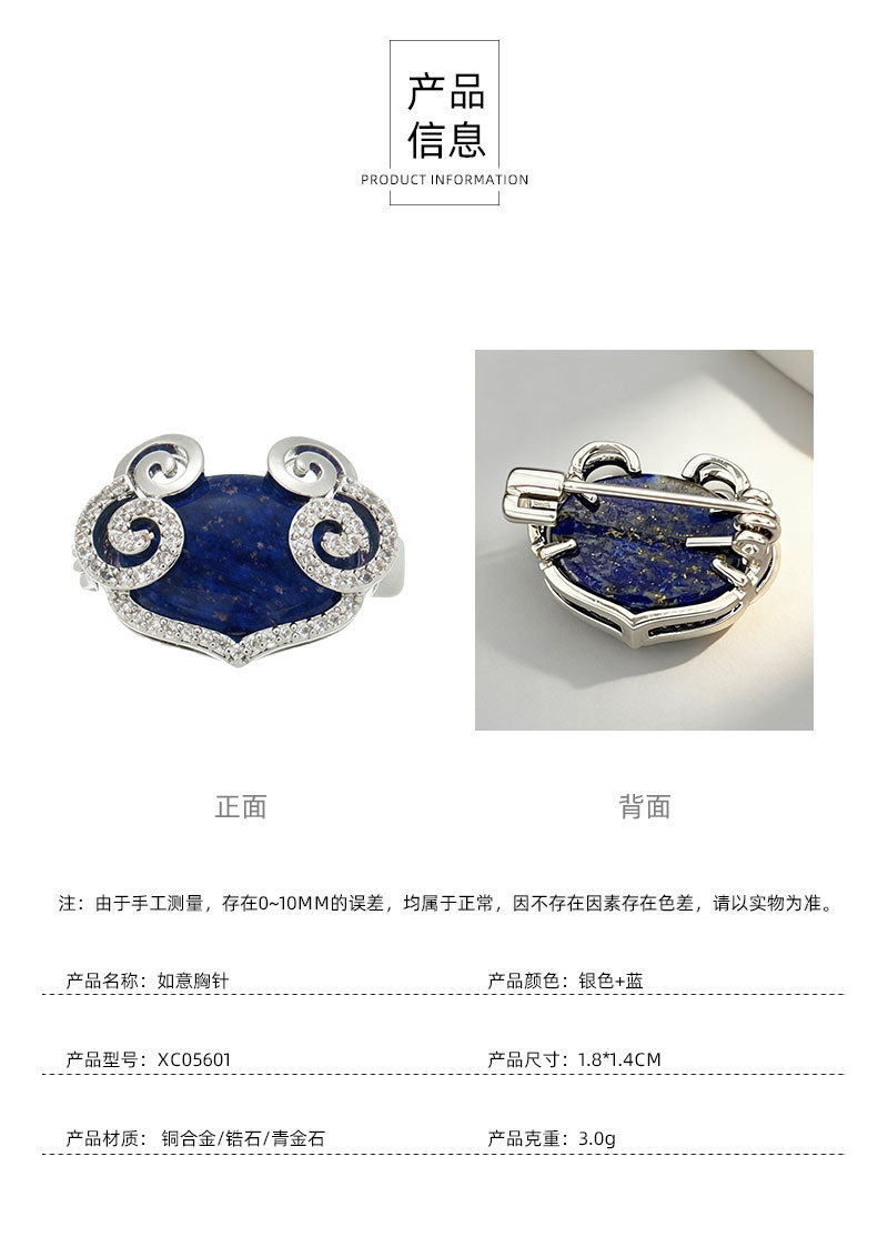 原创设计新中式青金石祥云如意胸针铜合金微镶锆石高级感精致别针 投诉