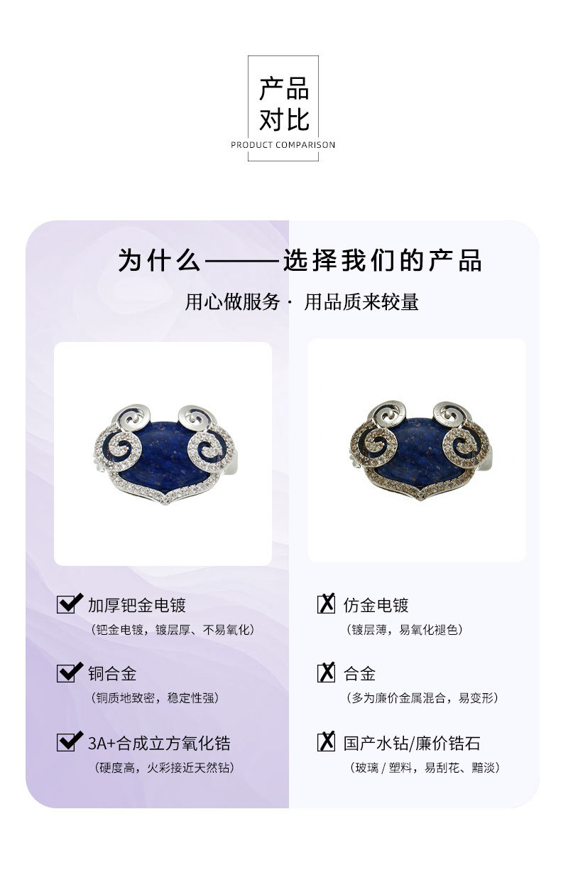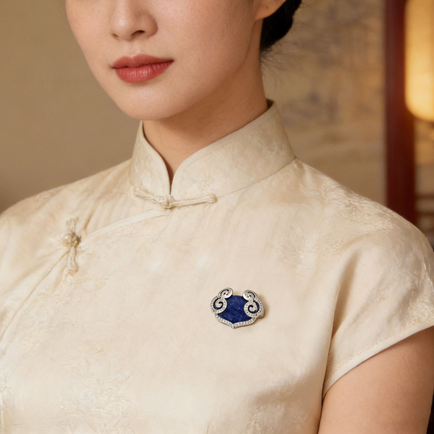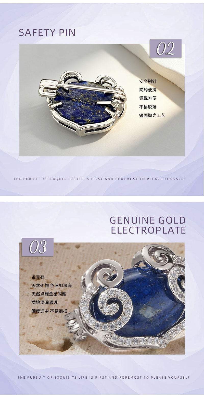 原创设计新中式青金石祥云如意胸针铜合金微镶锆石高级感精致别针 投诉