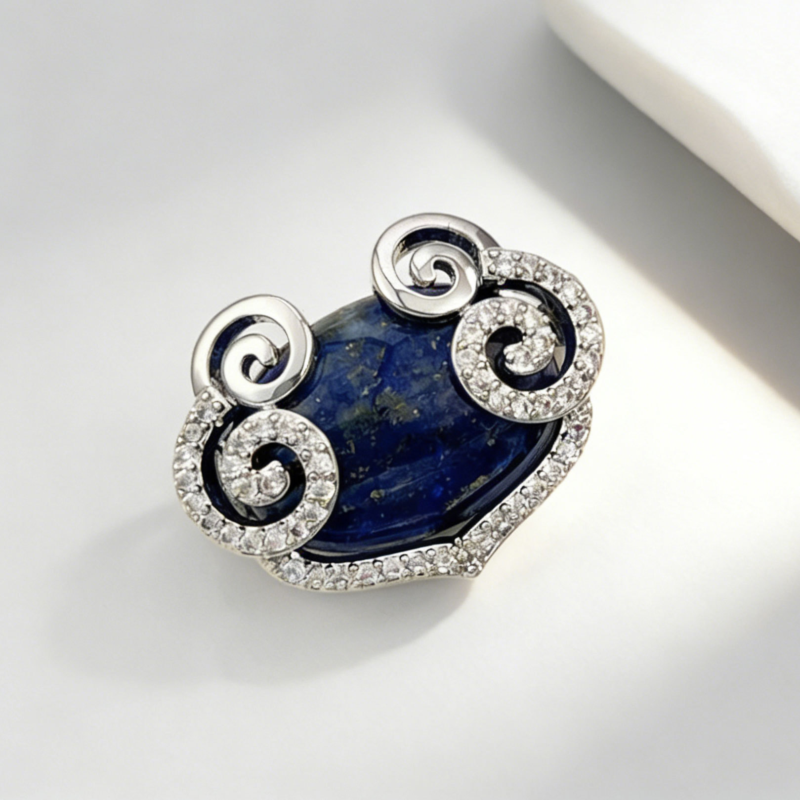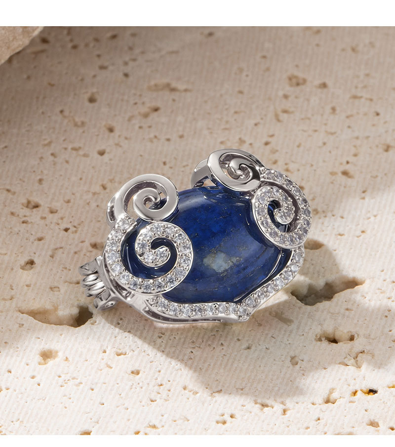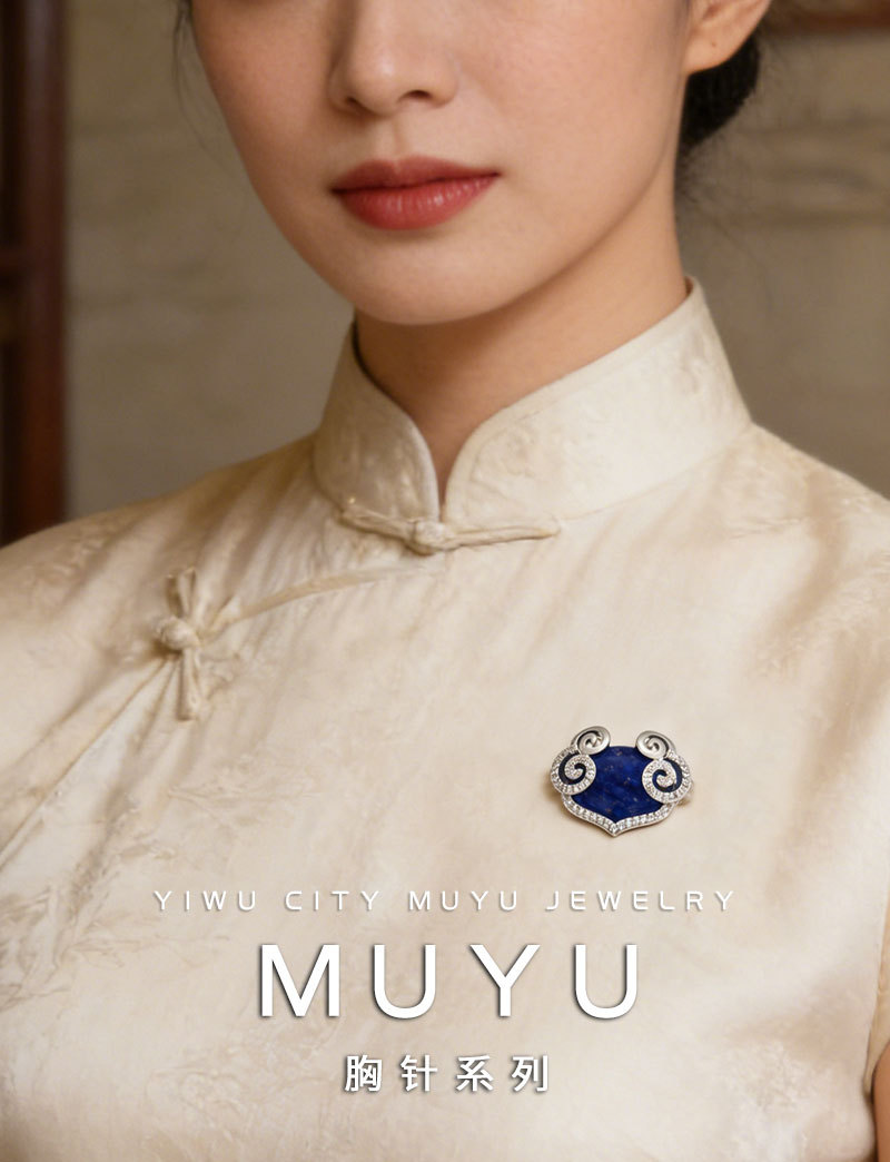 原创设计新中式青金石祥云如意胸针铜合金微镶锆石高级感精致别针