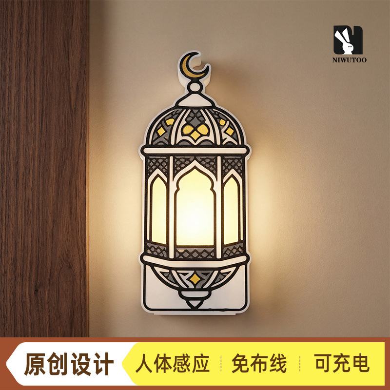 跨境新款人体感应室内墙壁灯可充电LED夜灯卧室走廊壁灯工厂直发