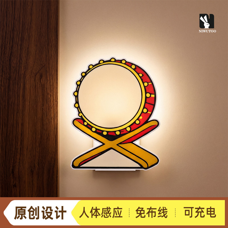 跨境创意墙面装饰画智能感应室内壁灯可充电小夜灯源头工厂直供