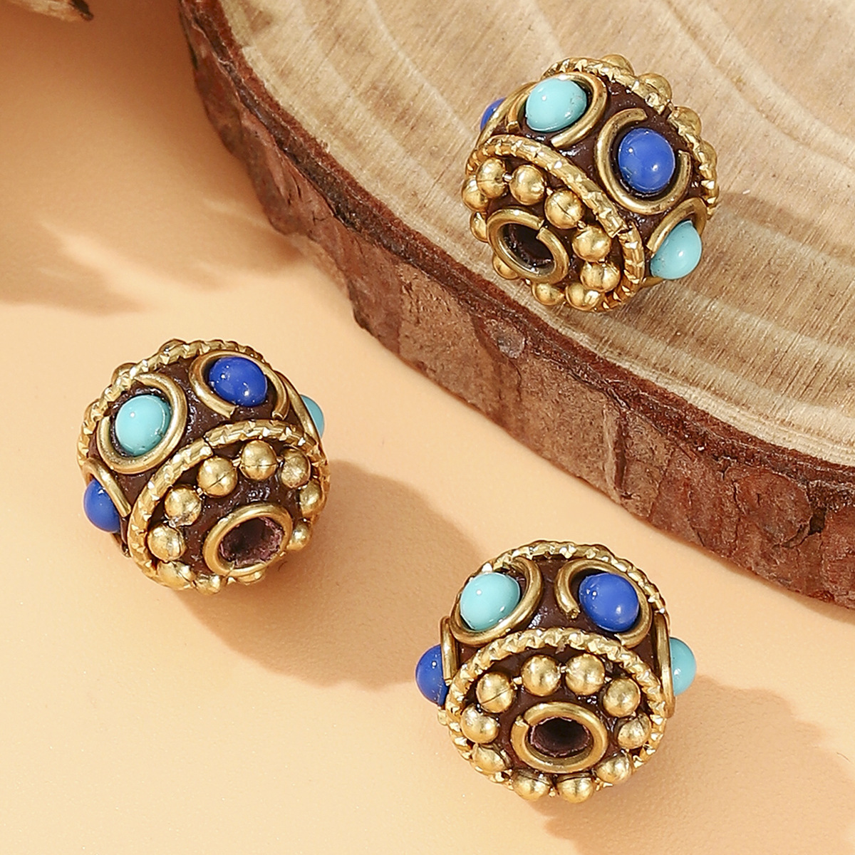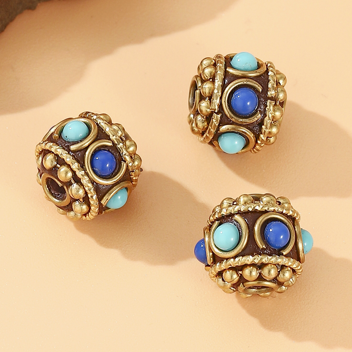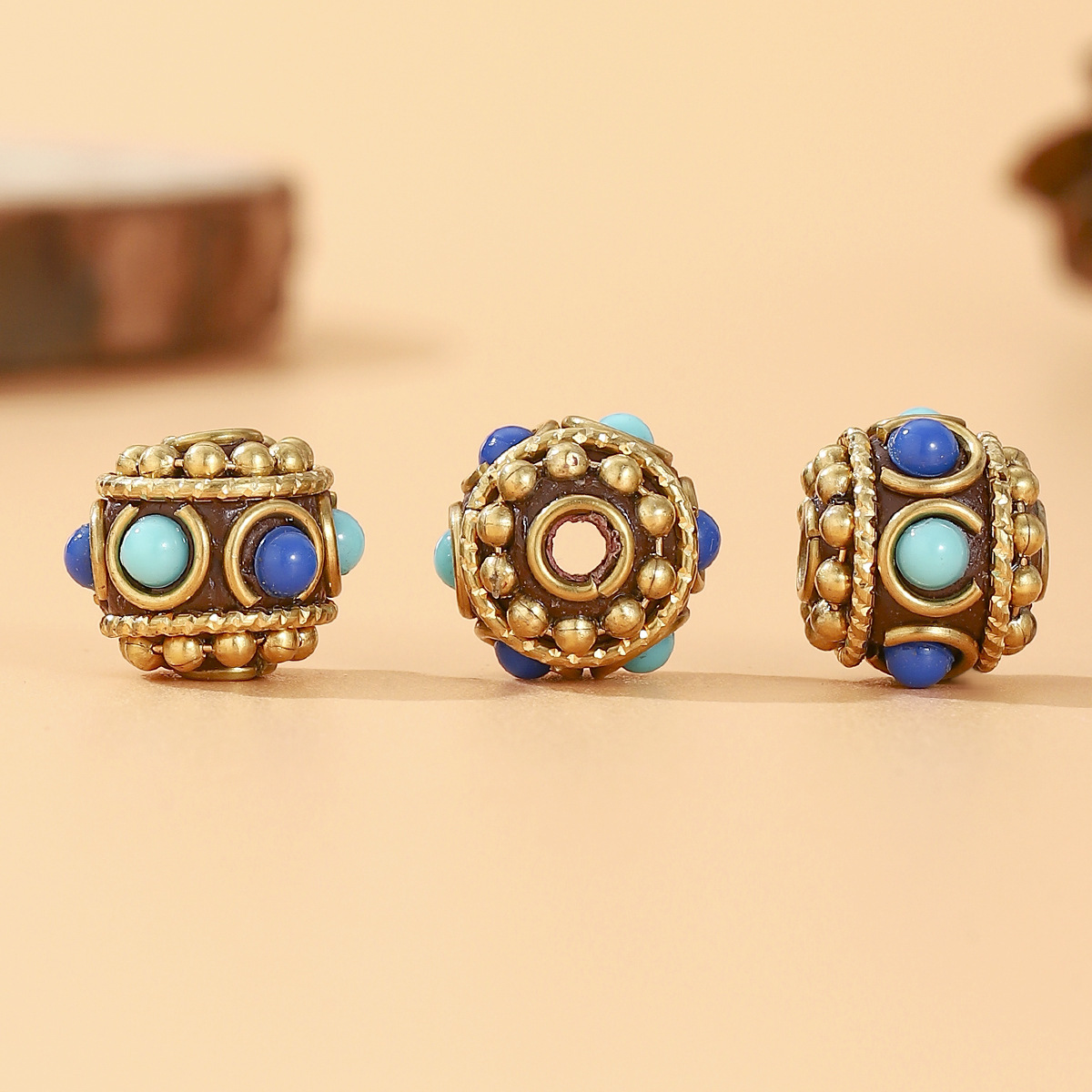 藏式尼泊尔复古铜珠镶嵌蓝松石DIY饰品配件桶珠腰珠 English | 投诉