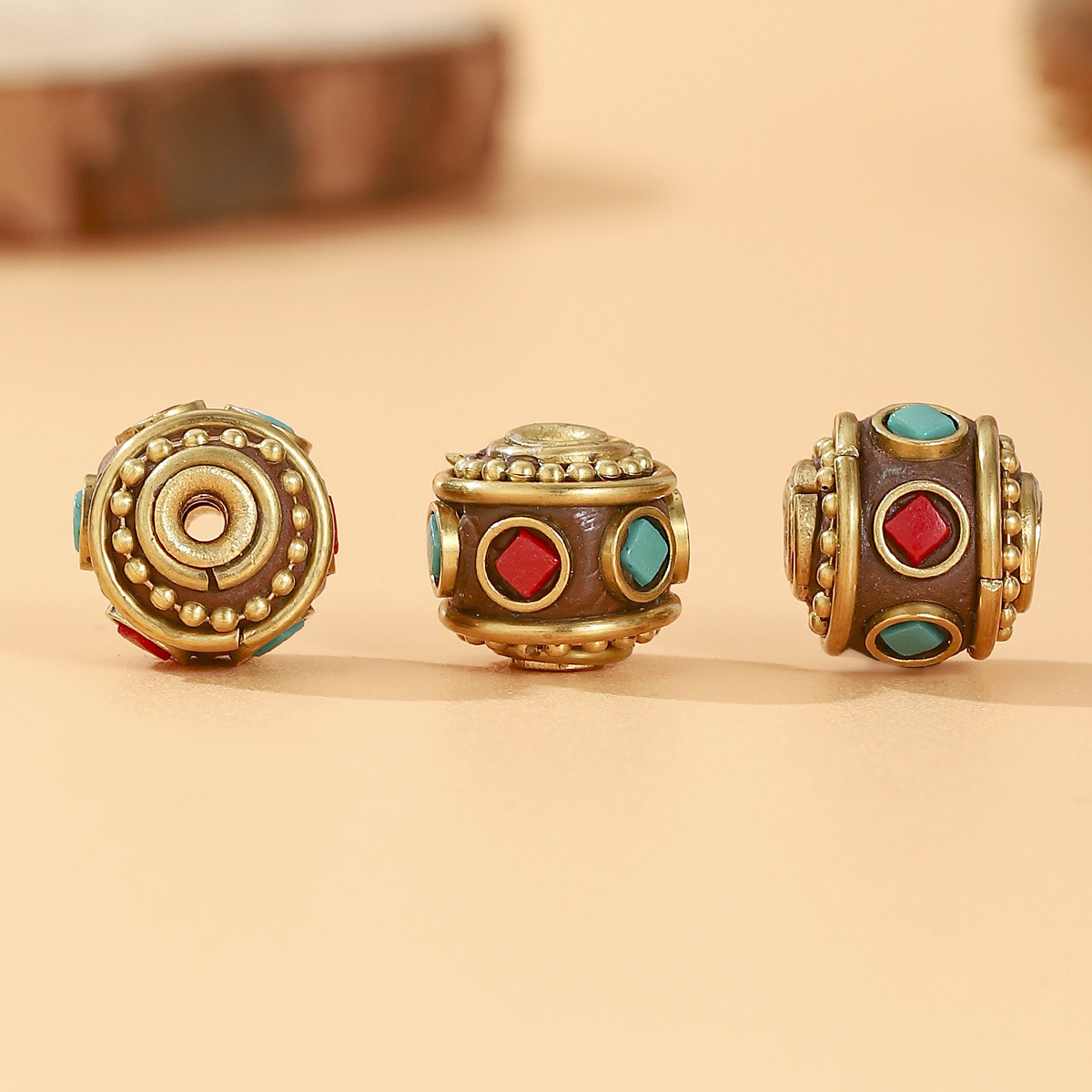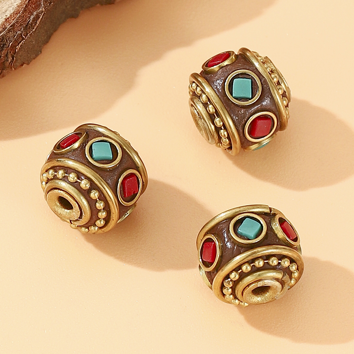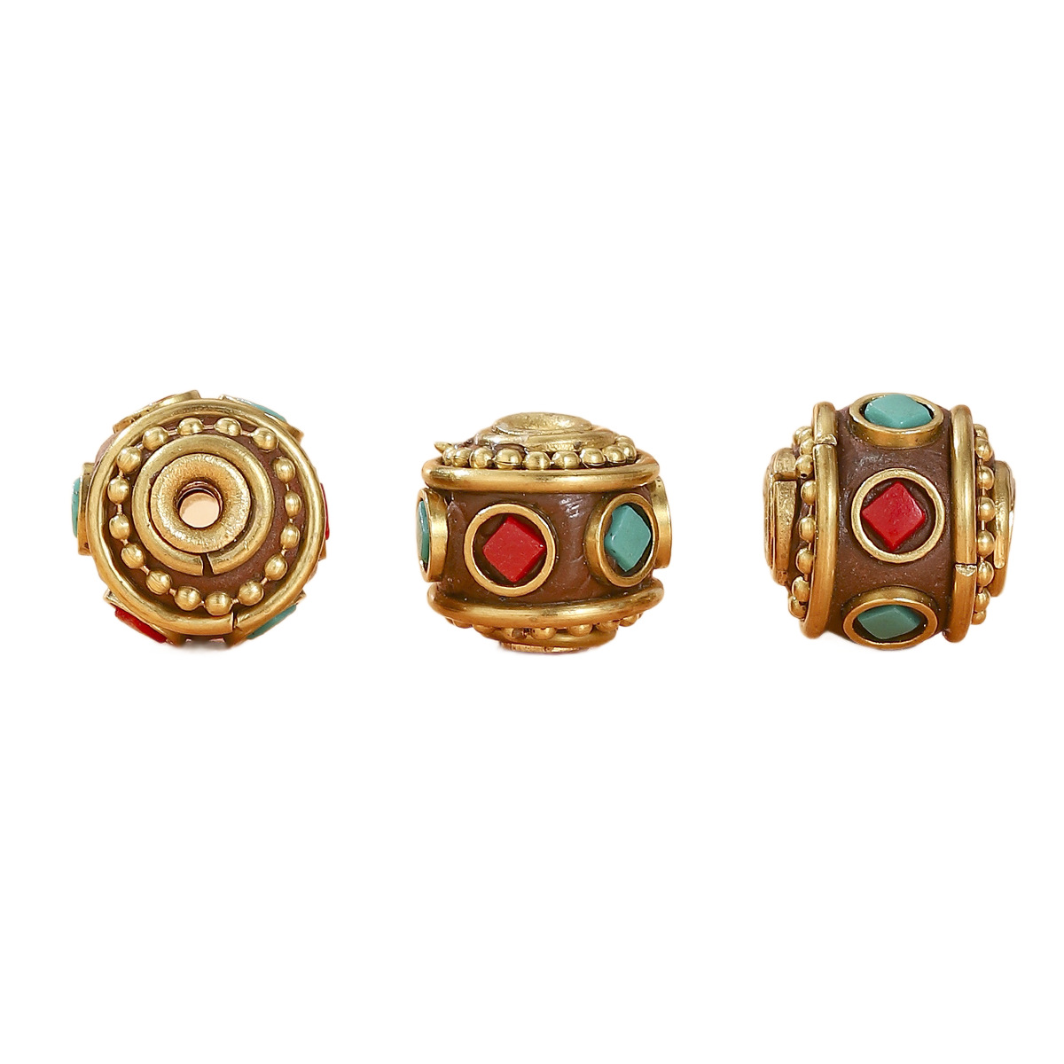 藏式名族风尼泊尔复古铜珠镶嵌红绿宝石隔珠DIY饰品配件桶珠 English | 投诉