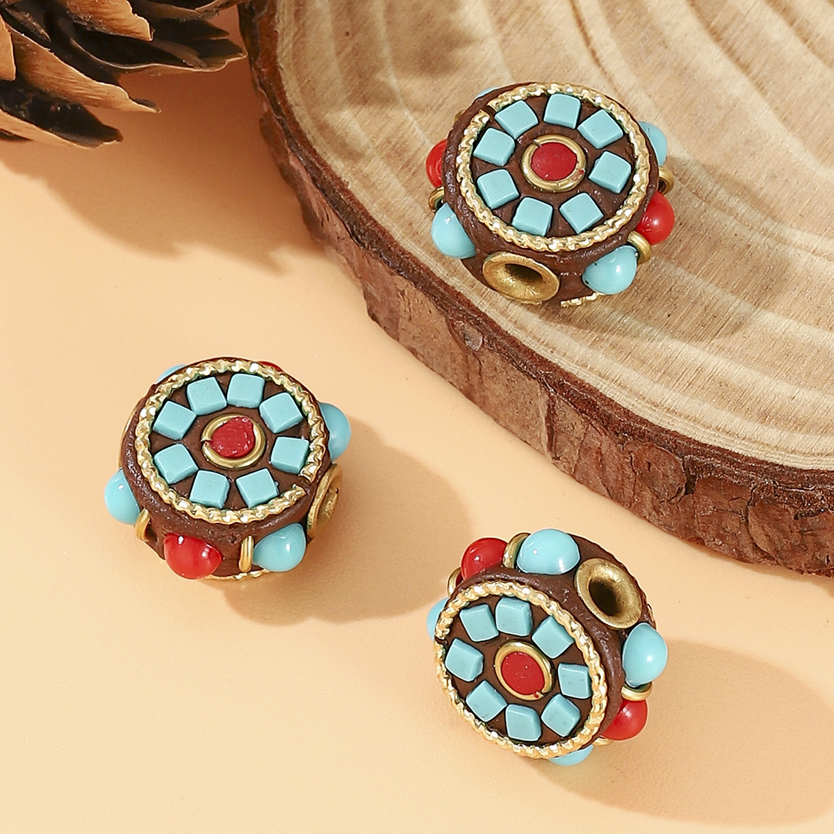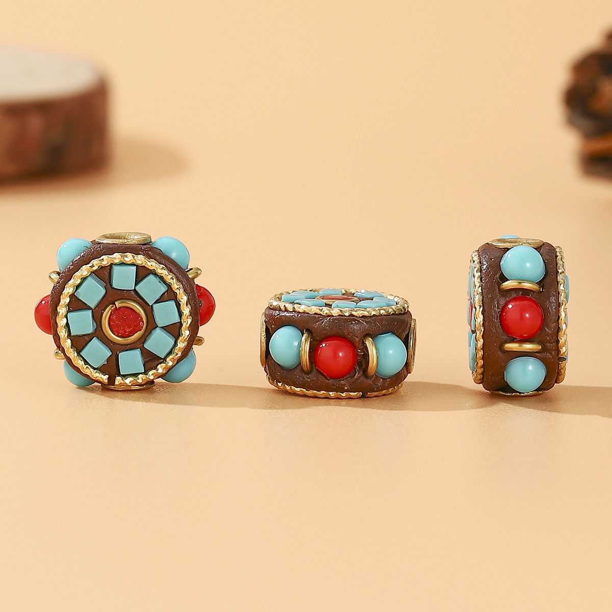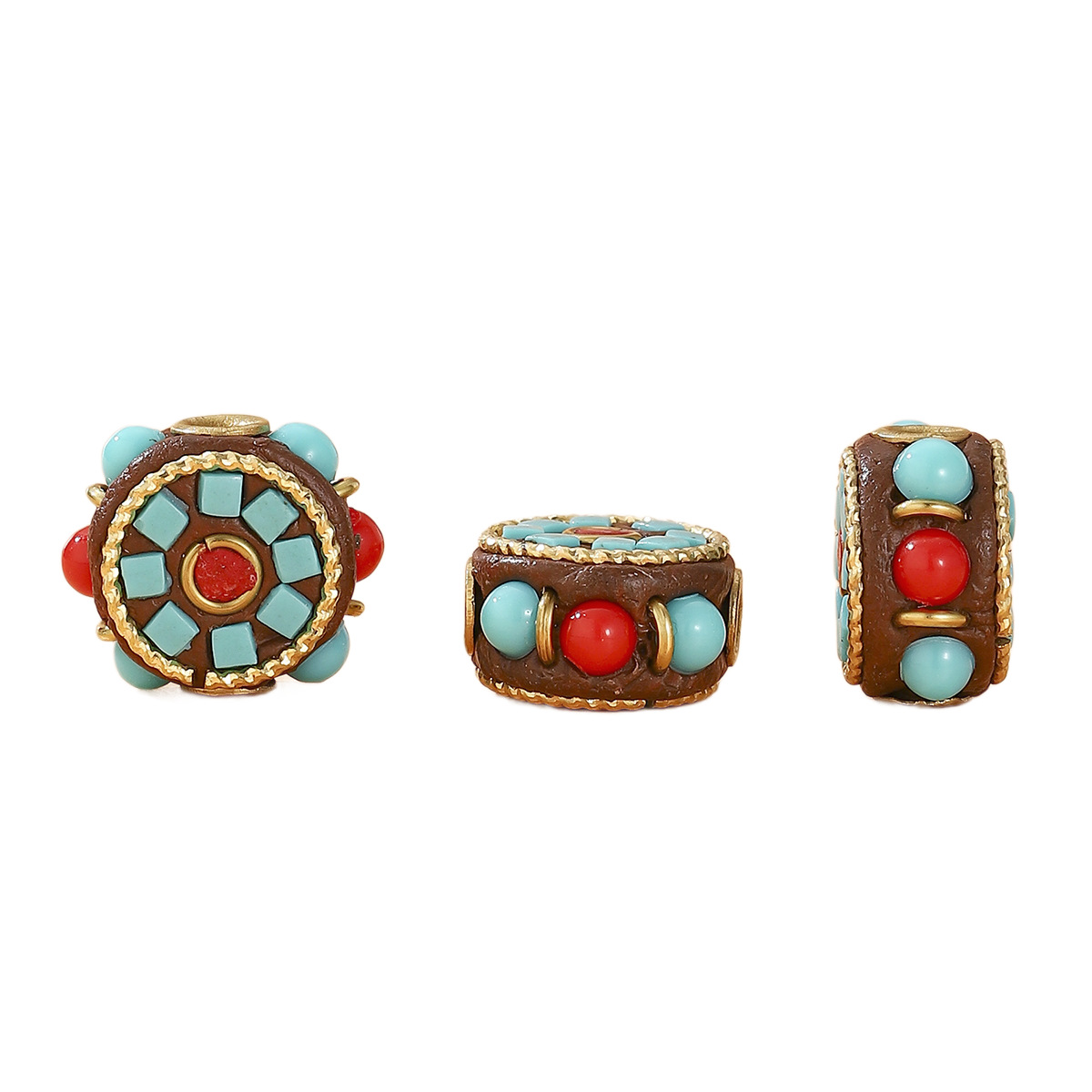 藏式尼泊尔复古桶珠手工镶松石红石DIY饰品配件民族风文玩隔珠 English | 投诉