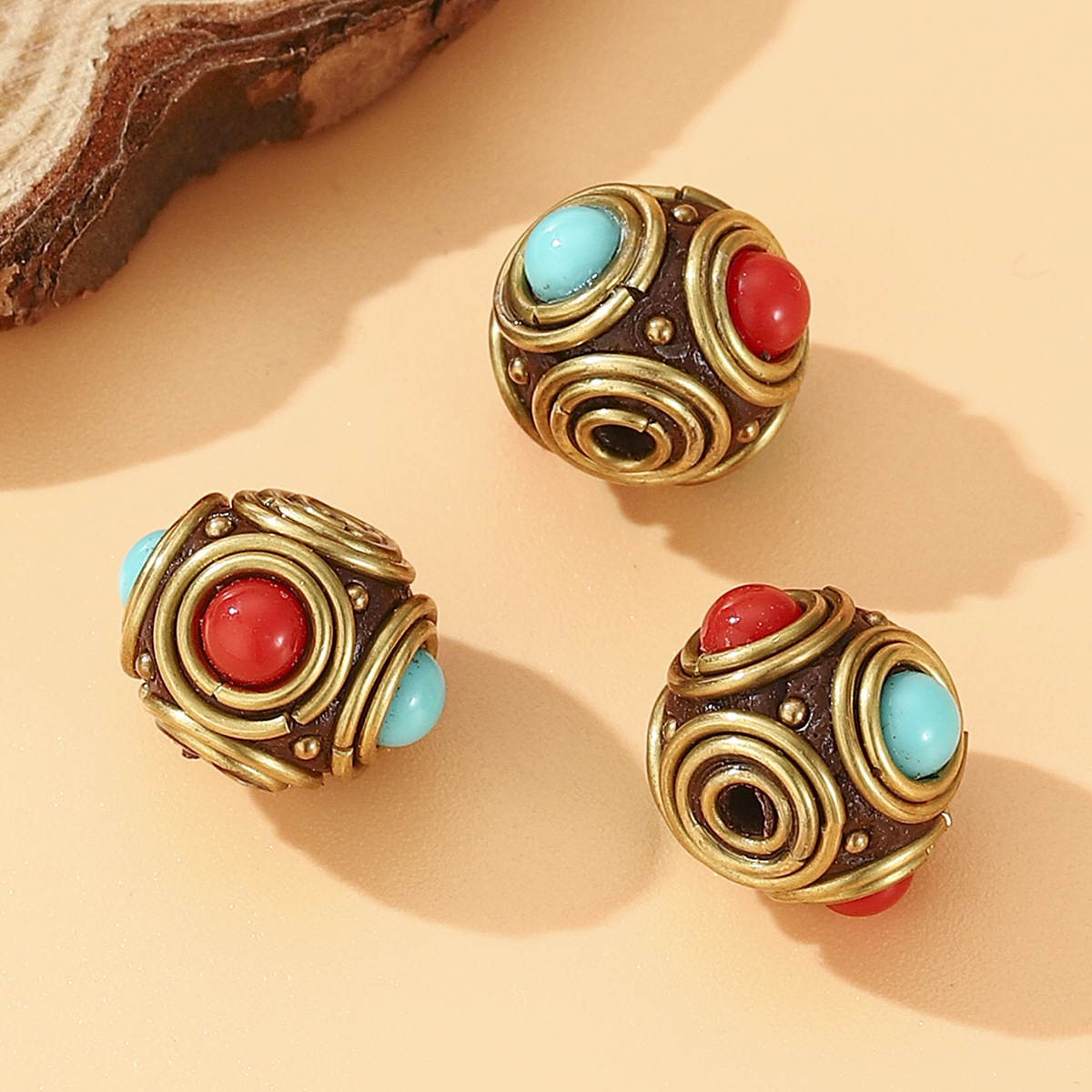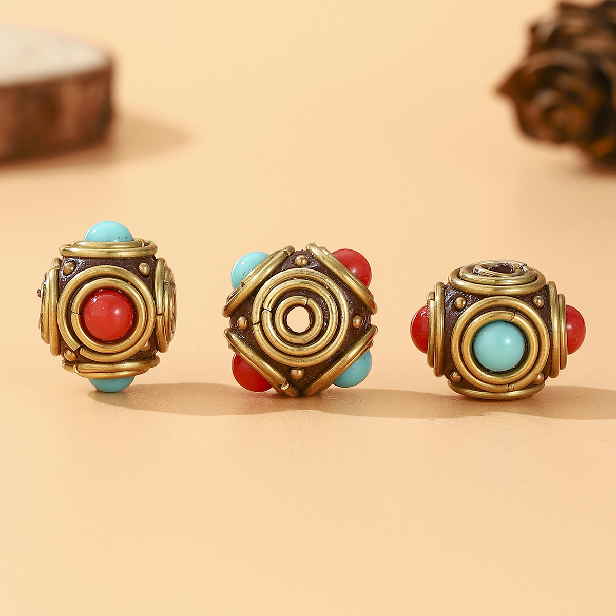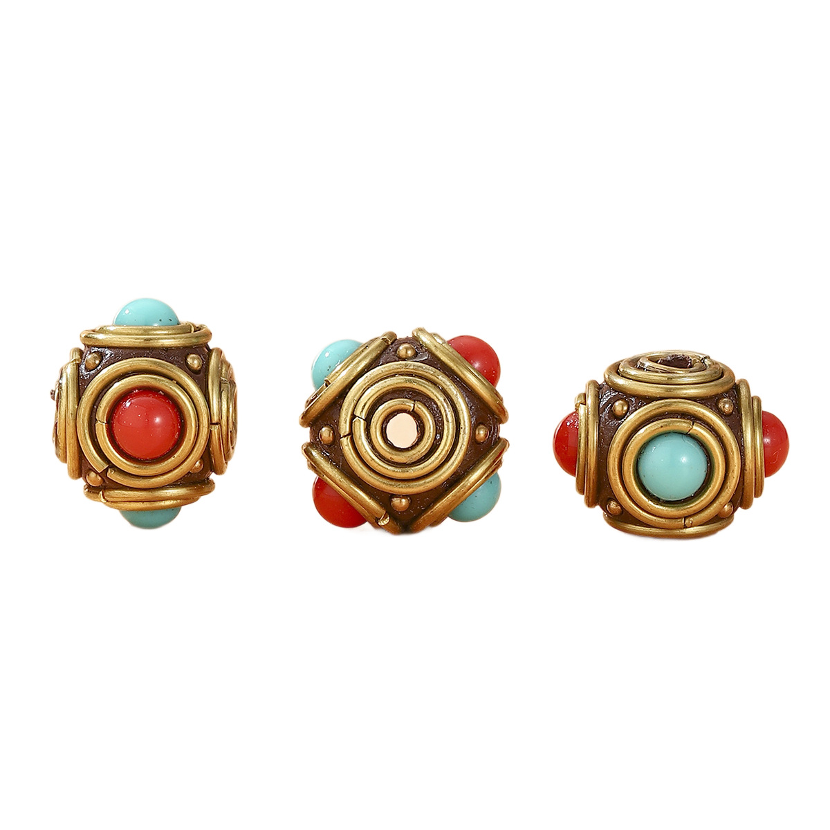 藏式尼泊尔复古桶珠镶嵌红蓝松石DIY手工饰品配件隔珠黄铜圆珠 English | 投诉
