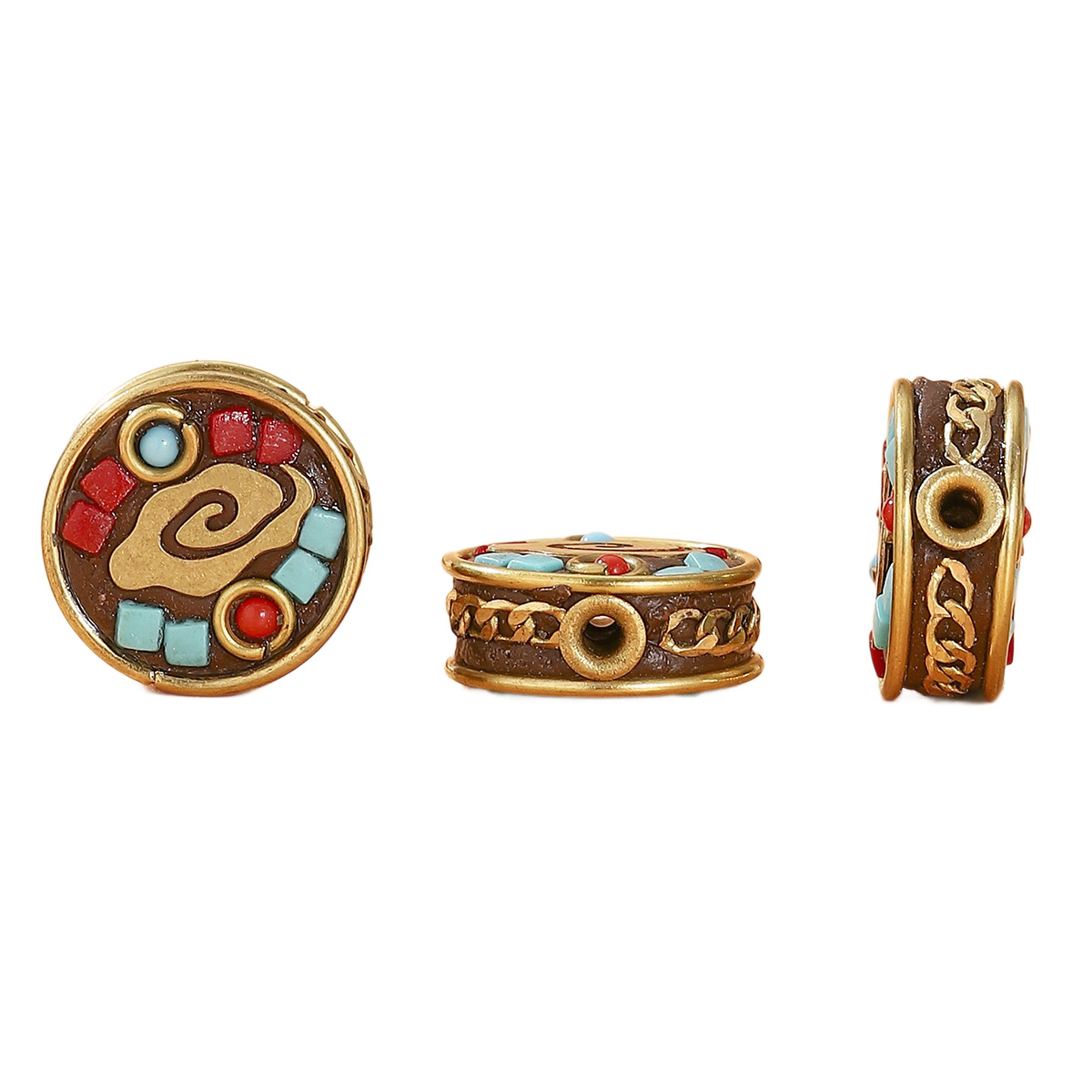 藏式尼泊尔复古铜珠镶嵌红松石桶珠DIY饰品配件隔珠文玩配饰 English | 投诉