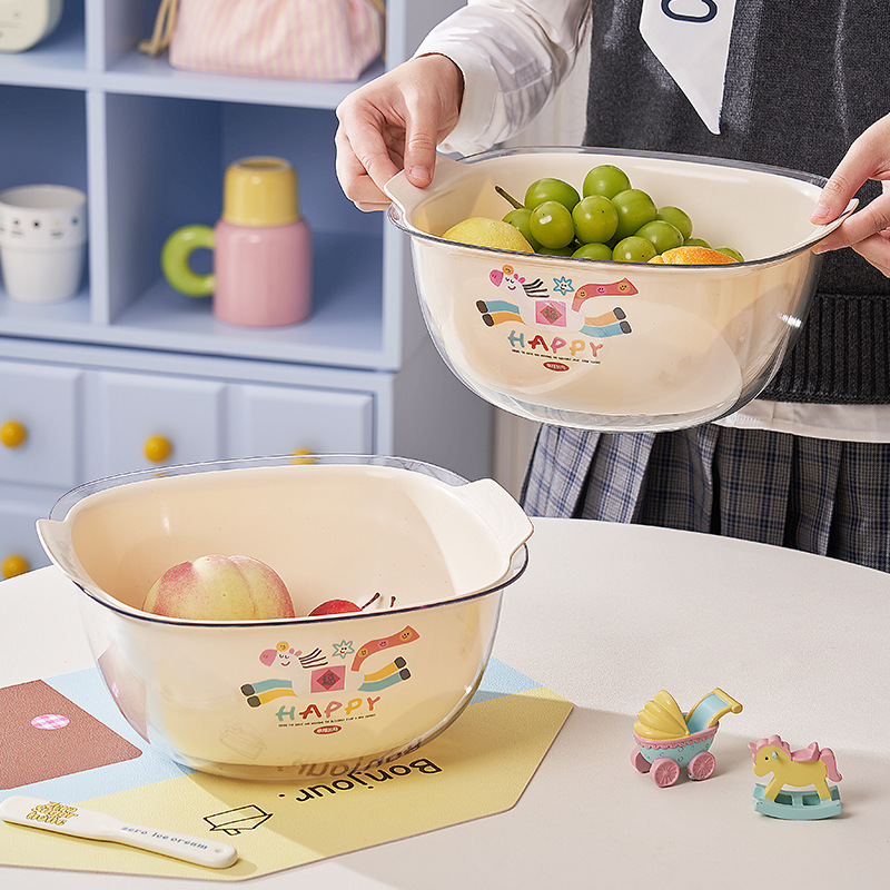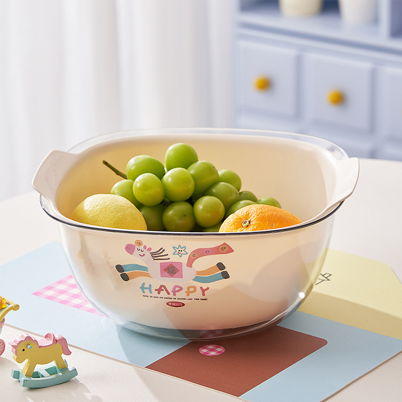 【马上有钱】可爱双层沥水篮加厚厨房家用洗水果神器蔬菜盆水果盘 English | 投诉