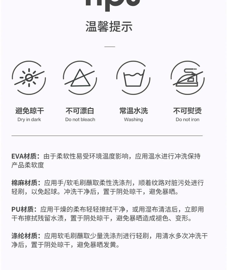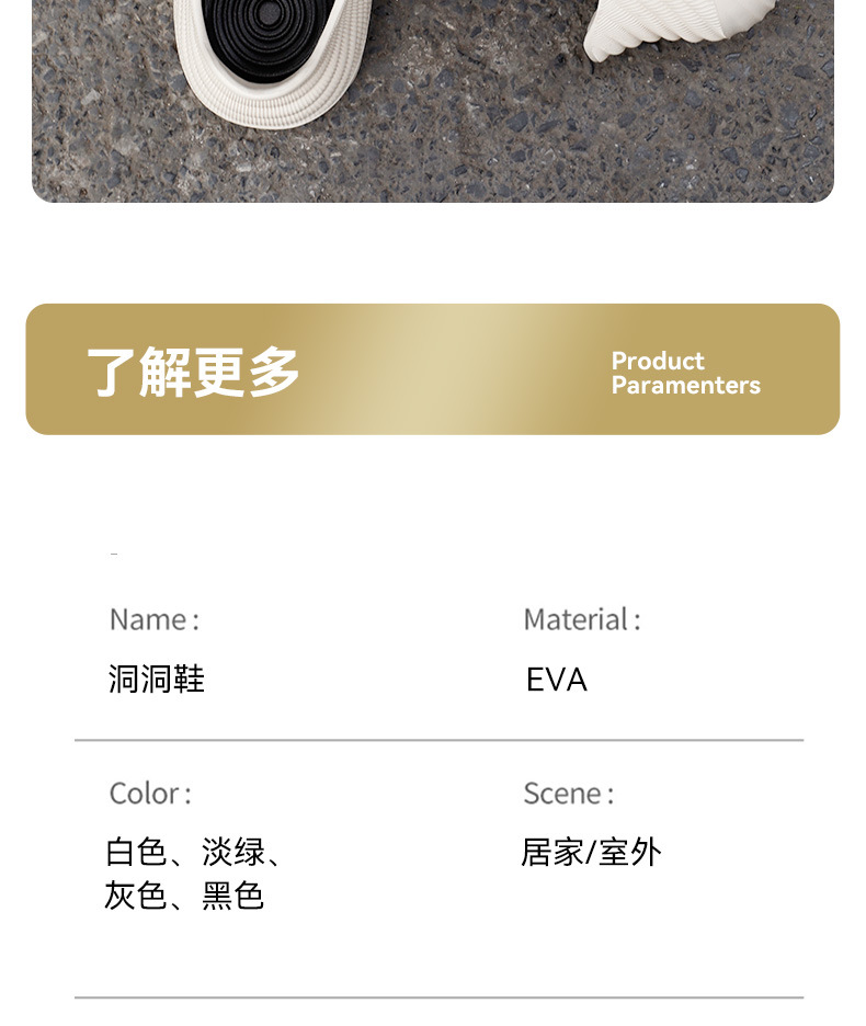 温馨提示:EVA材质拖鞋需避免高温暴晒,长时间高温会导致鞋子产生变形。