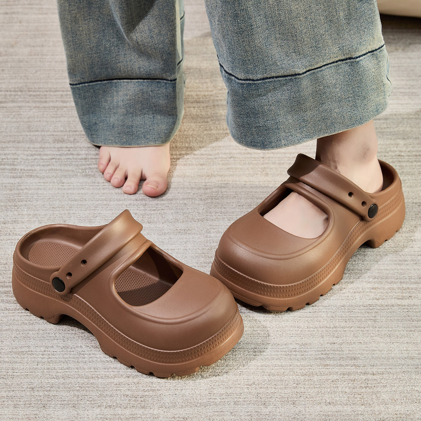 温馨提示:EVA材质拖鞋需避免高温暴晒,长时间高温会导致鞋子产生变形。