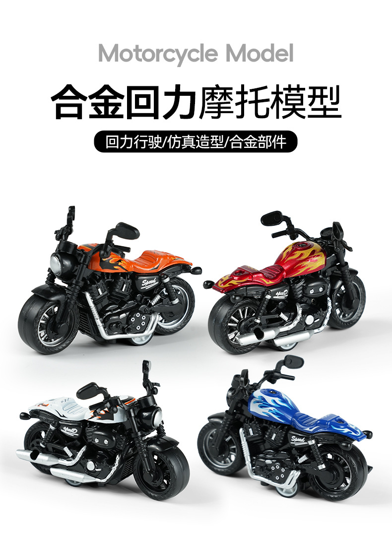 跨境儿童玩具仿真合金回力摩托车摆件夹娃娃机钥匙扣地摊玩具礼品