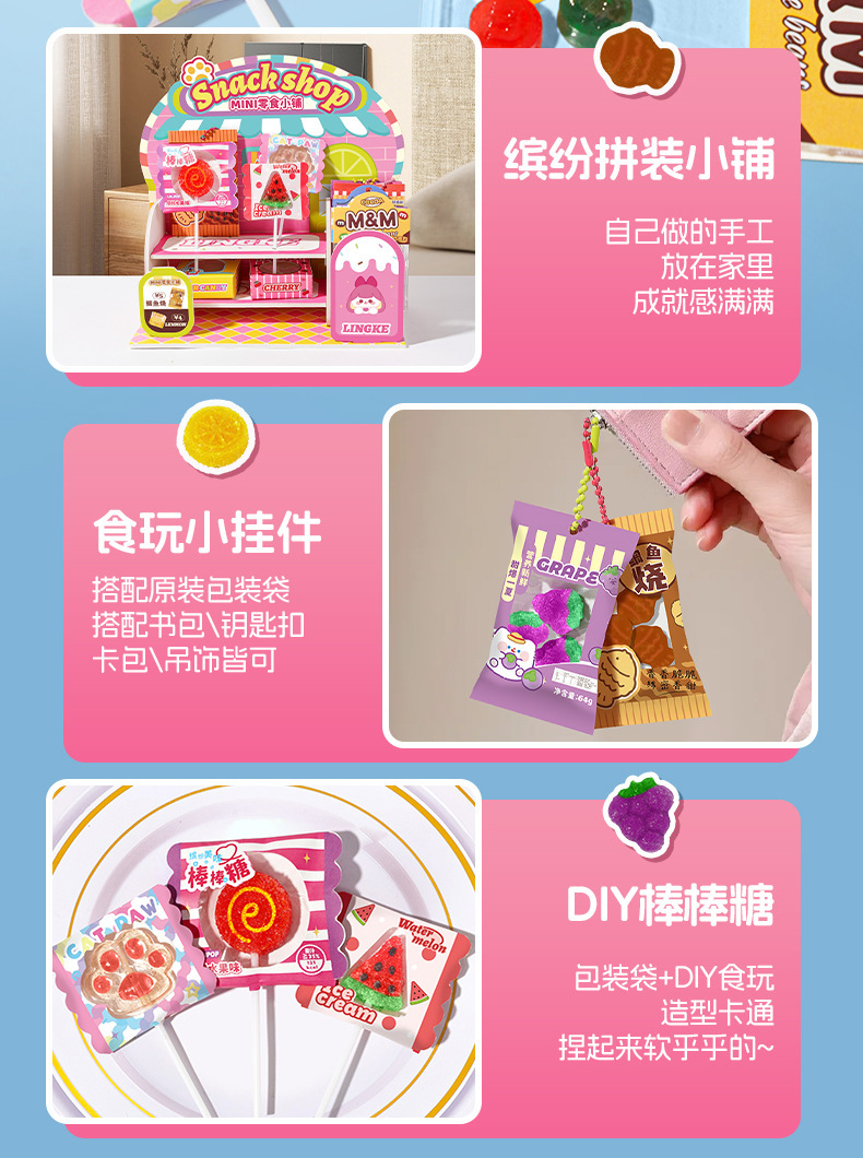 材质: 塑料/塑胶 品牌: 小伶玩具 是否能够DIY: 是 是否电动: 否 是否多功能: 否 适用年龄: 儿童(4-6岁) 产地: 浙江金华 货号: 3915XLWJ.LK250130 产品类别: 小伶diy零食小铺 规格: 彩盒 包装方式: 彩盒 加工定制: 否 是否外贸: 否 是否有动漫形象: 否 专利及著作权申请时间: 2025 是否有导购视频: 是 是否专供外贸: 否 3C配置类别: 14岁以下的纸制玩具 颜色: 小伶DIY零食小铺 是否跨境出口专供货源: 否