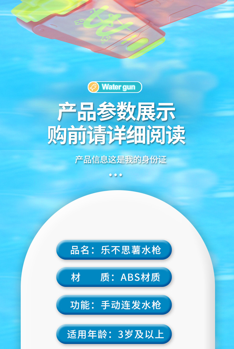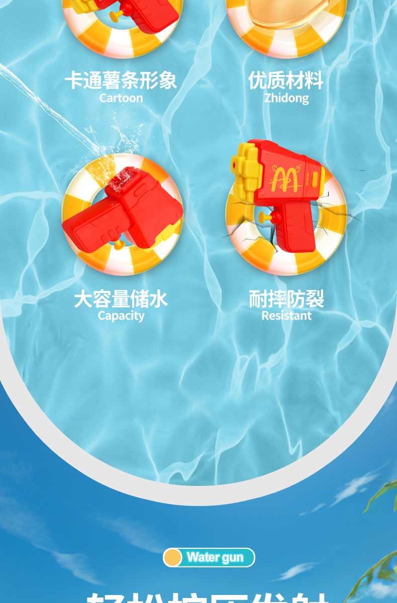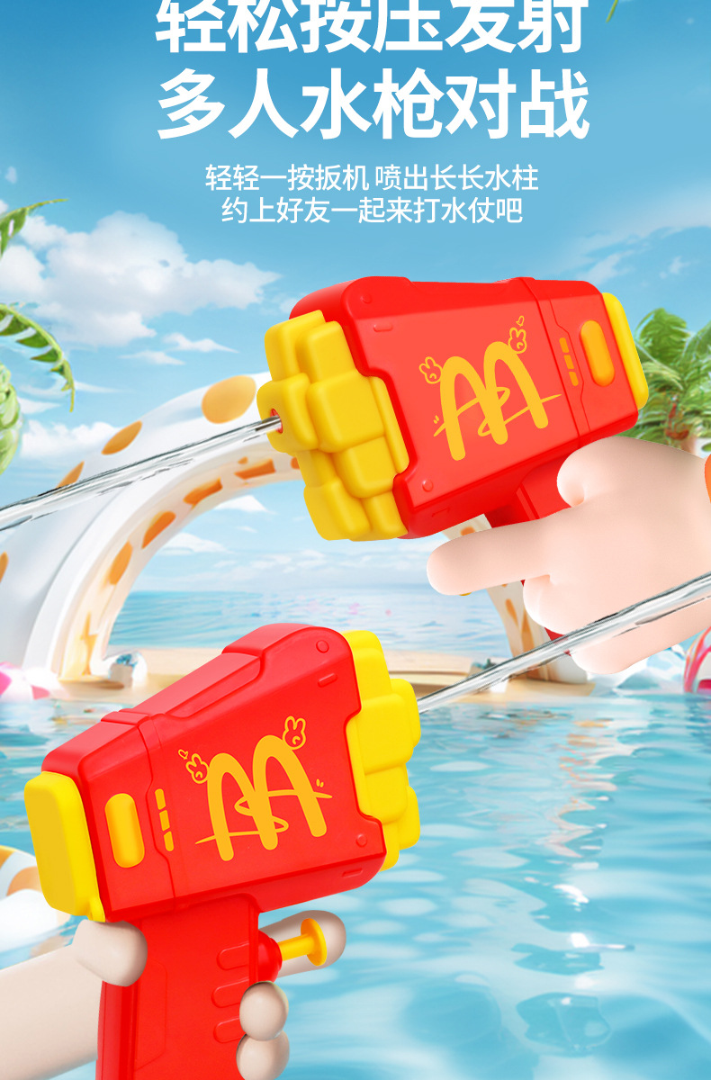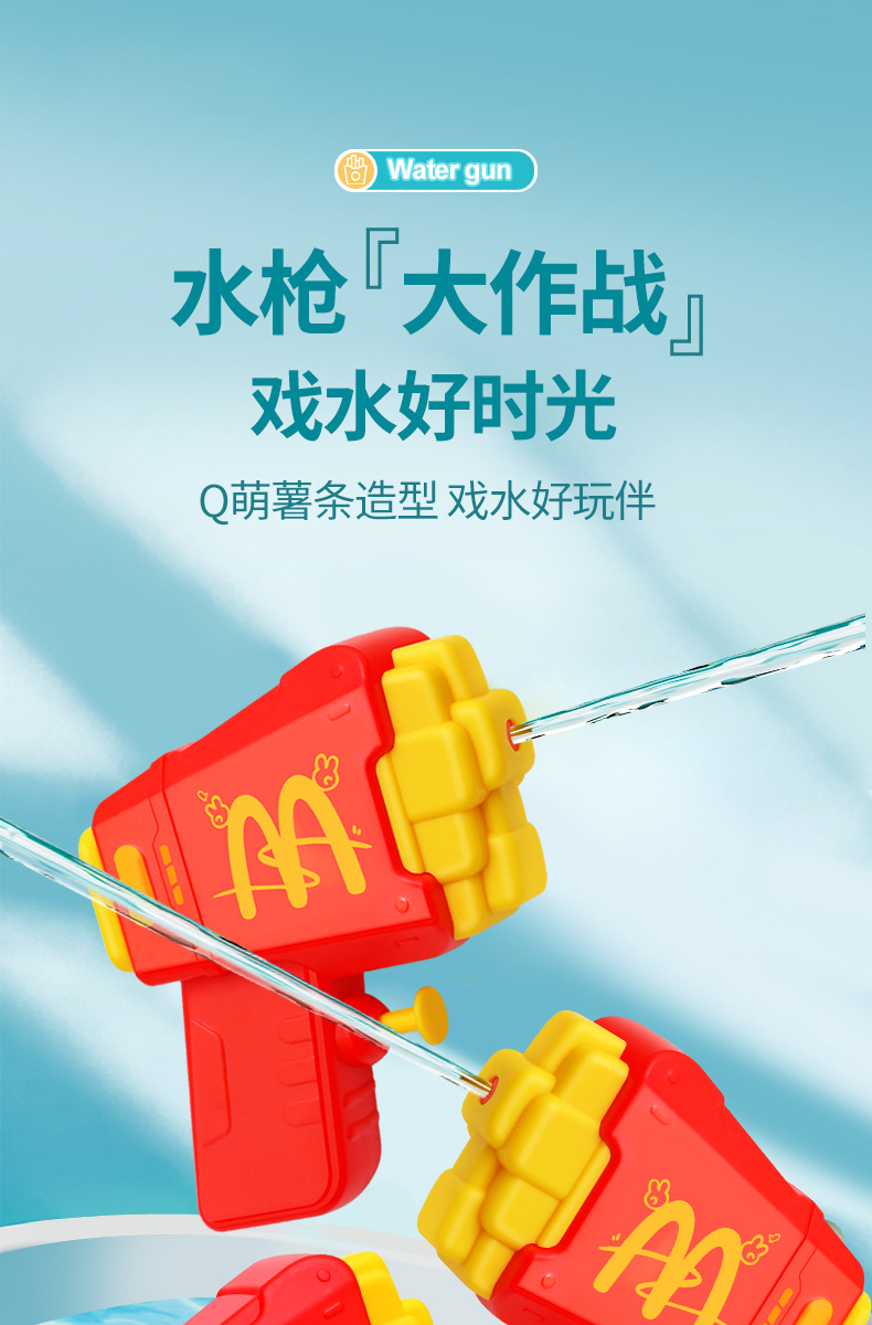 材质: 塑料/塑胶 功能: 出水,滋水,射水,按压喷水 品牌: 其他 规格: 9.5*3.5*11.5cm 包装方式: OPP袋 戏水玩具类别: 戏水水枪 适用年龄: 儿童(4-6岁) 产地: cn 货号: 81007 能力培养: 动手动脑,抓握,亲子交流 是否有动漫形象: 否 专利及著作权申请时间: 无 是否有导购视频: 是 产品类别: 戏水玩具 类别: 水枪 是否专供外贸: 否 3C配置类别: 14岁以下的塑胶玩具 商品3C认证码: 2024152202054897 颜色: 薯条按压水枪81007 是否跨境出口专供货源: 否