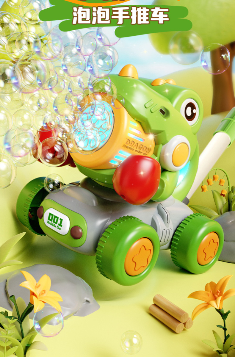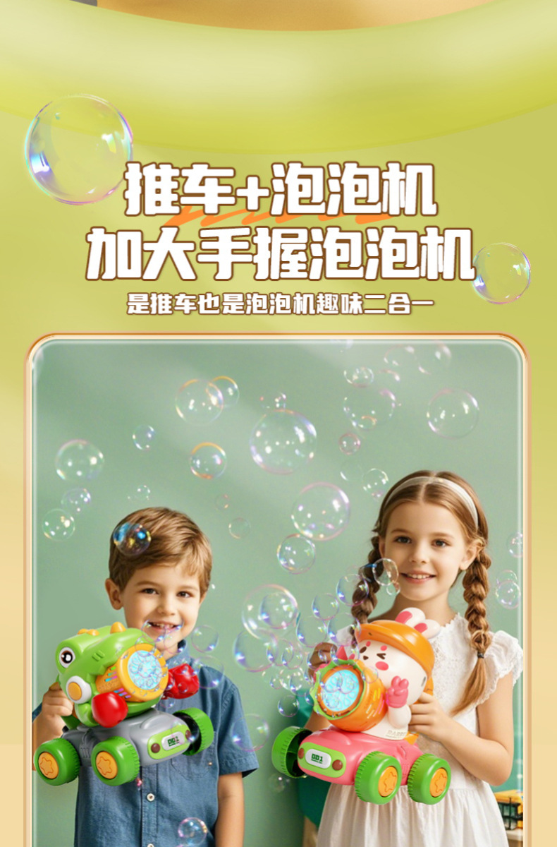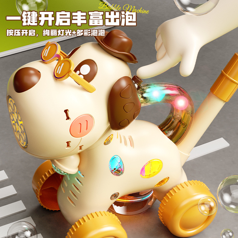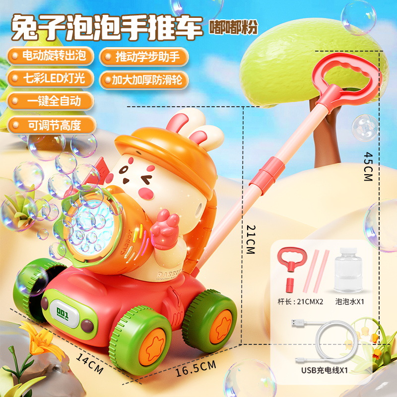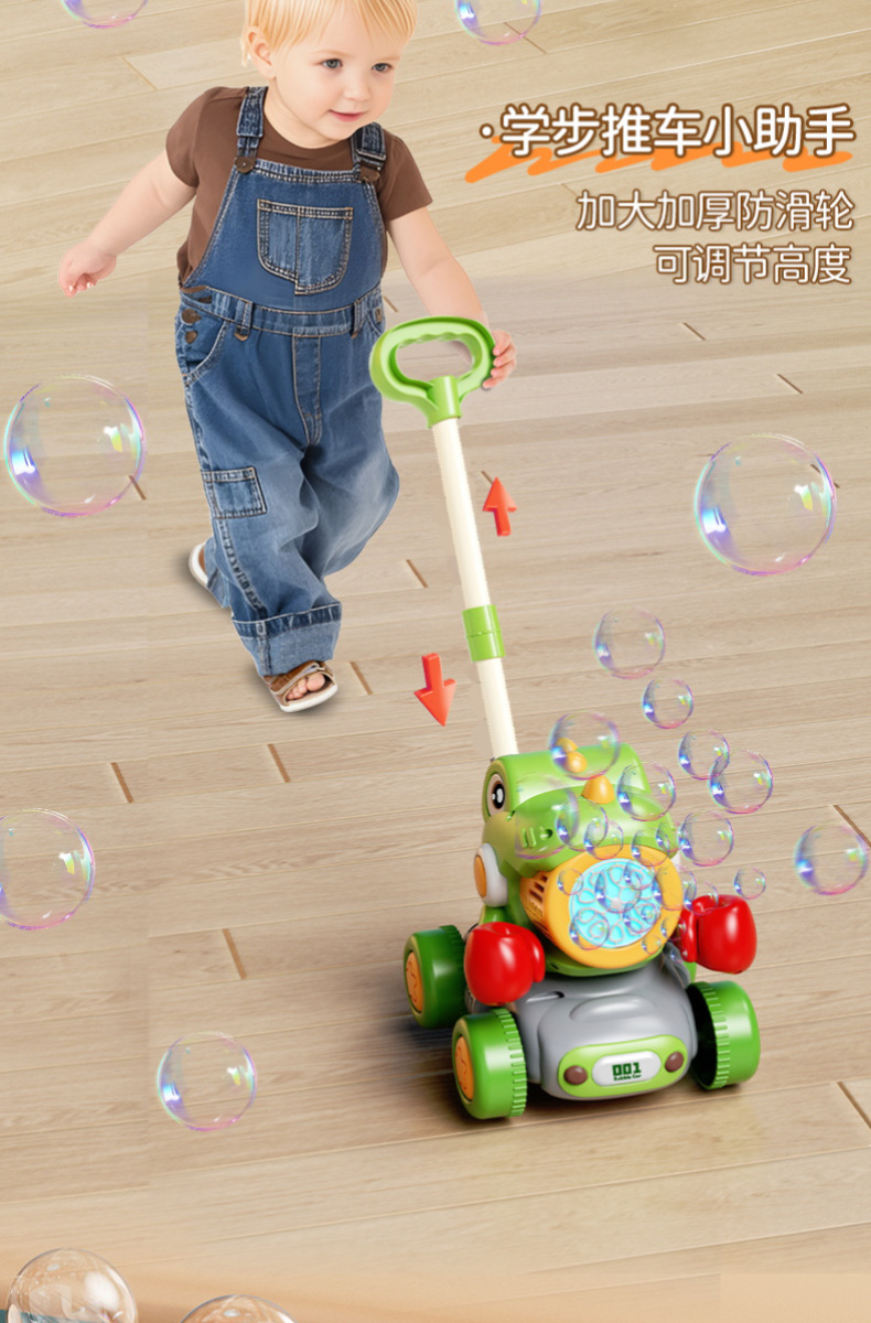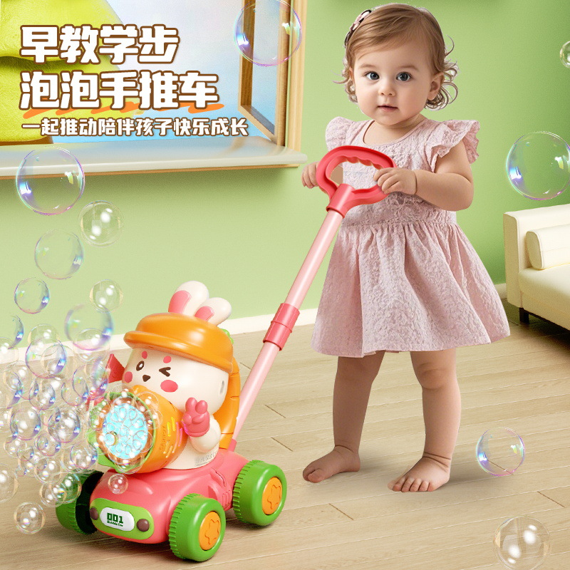 宝宝新年玩具0-3学走路儿童四轮手推卡通泡泡车电动泡泡机全自动
