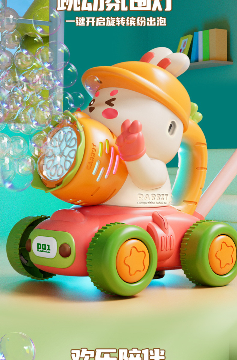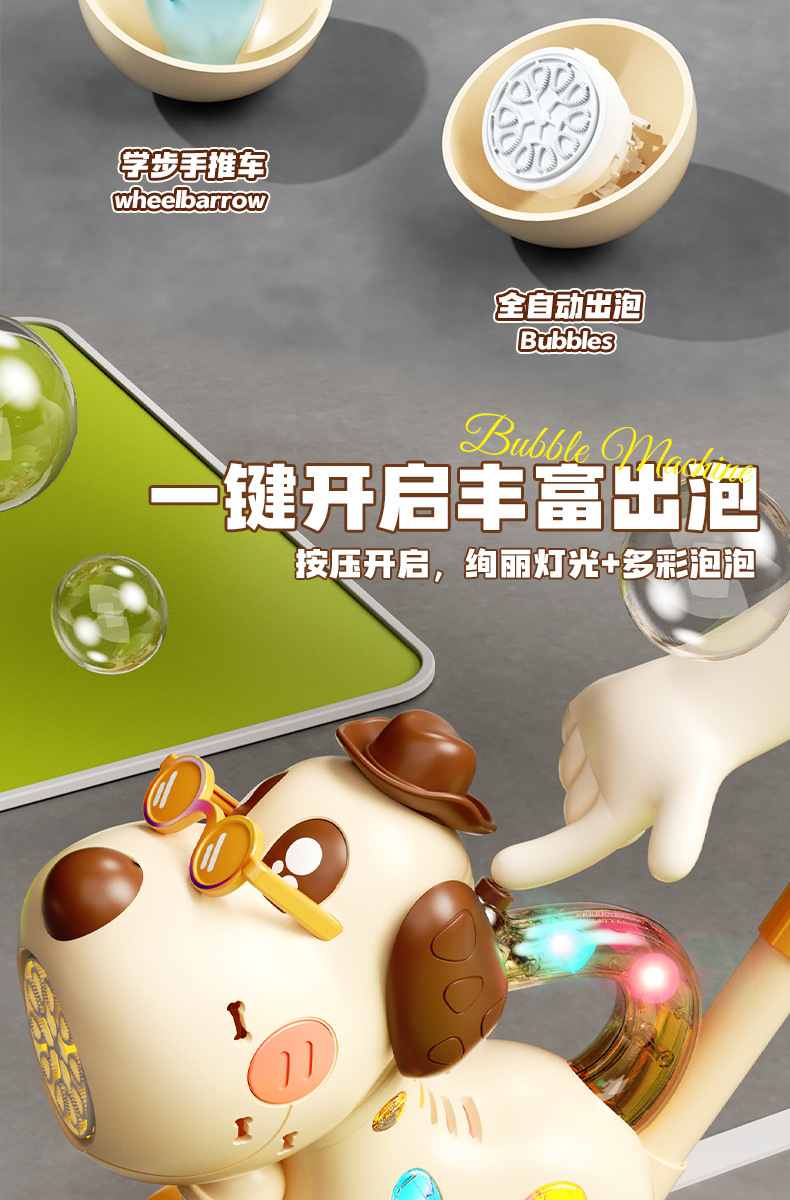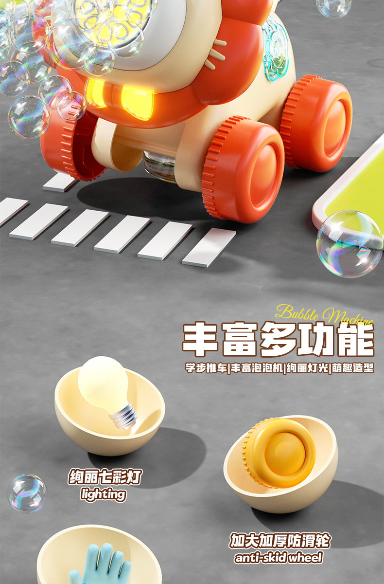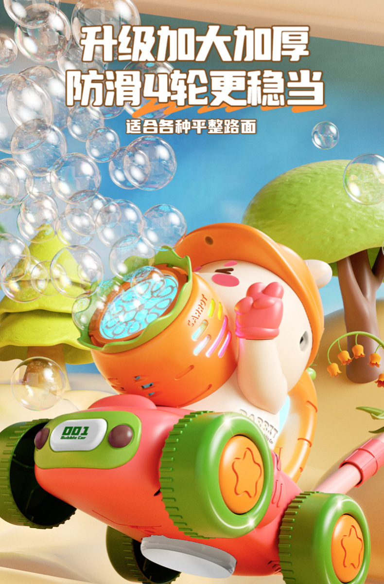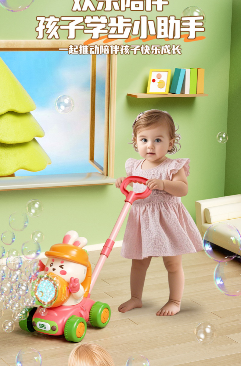 宝宝新年玩具0-3学走路儿童四轮手推卡通泡泡车电动泡泡机全自动
