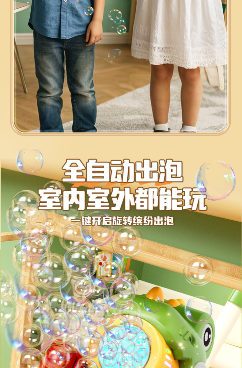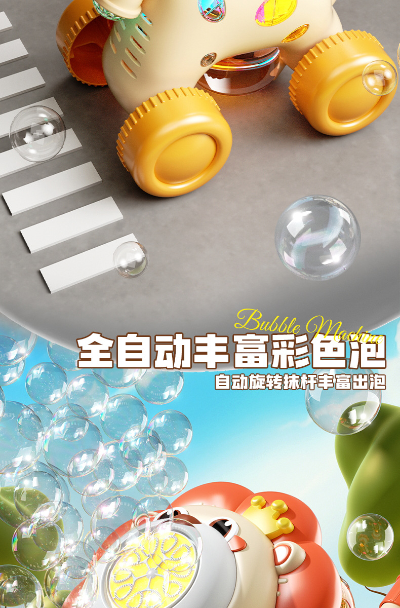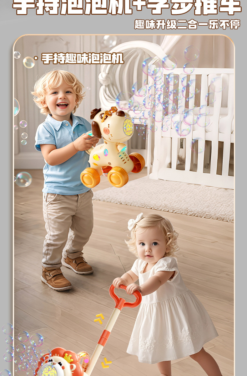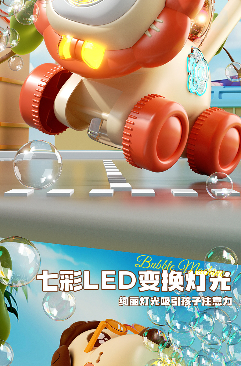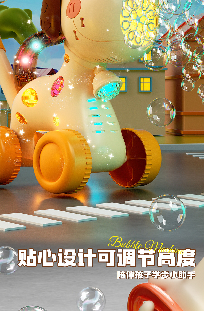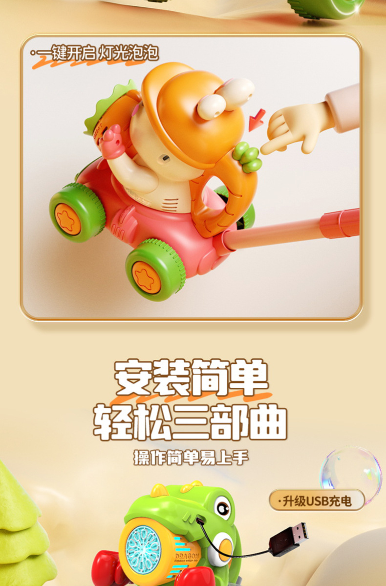 宝宝新年玩具0-3学走路儿童四轮手推卡通泡泡车电动泡泡机全自动