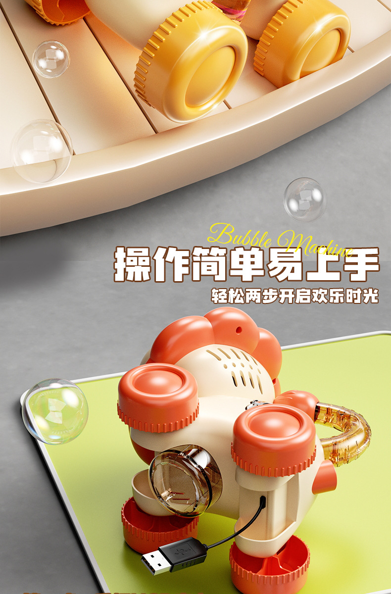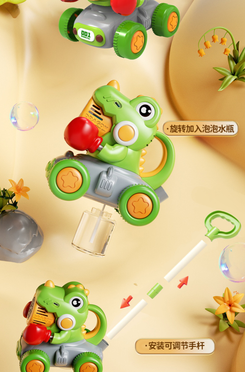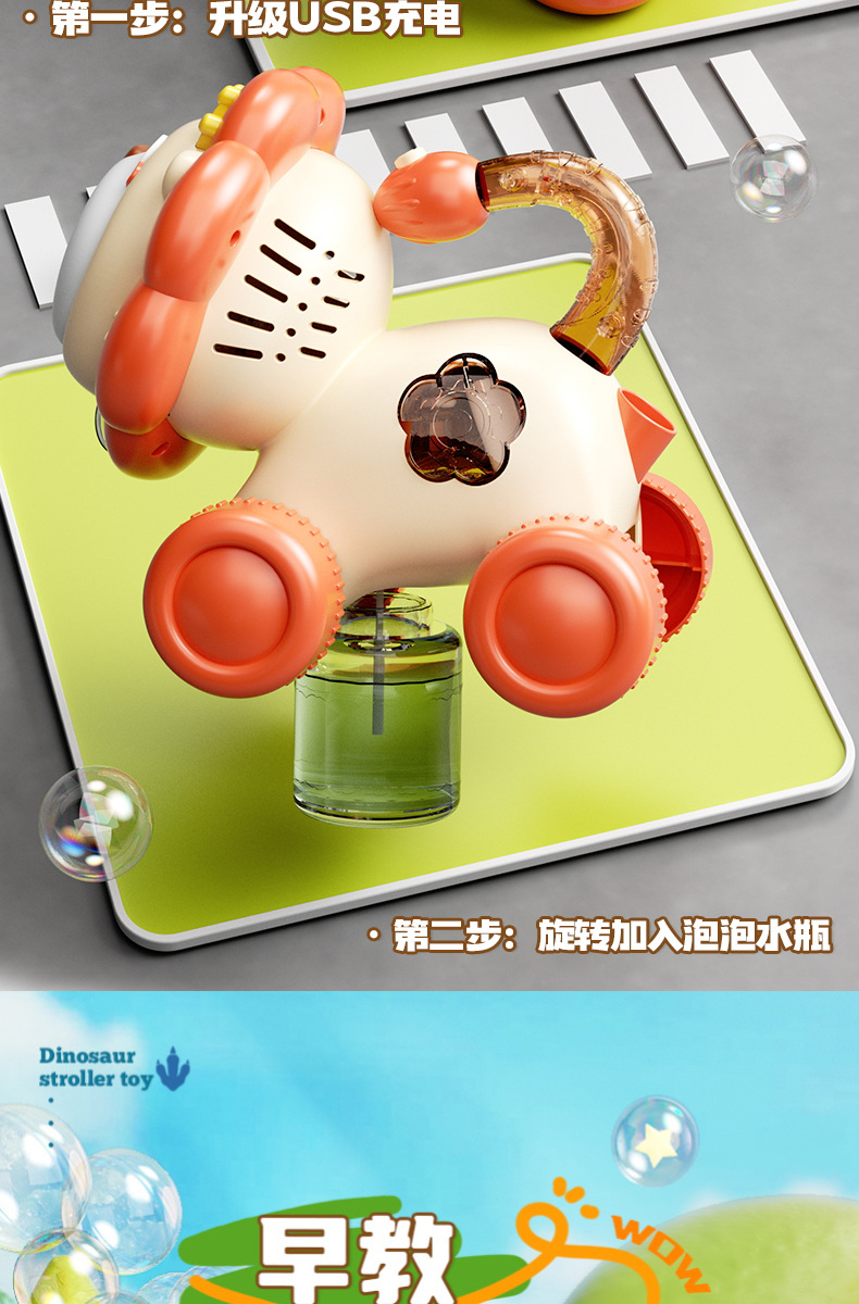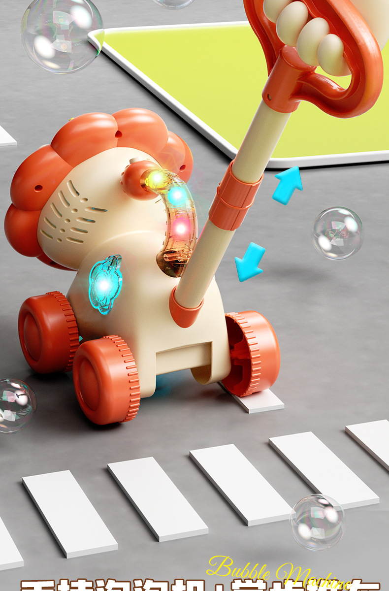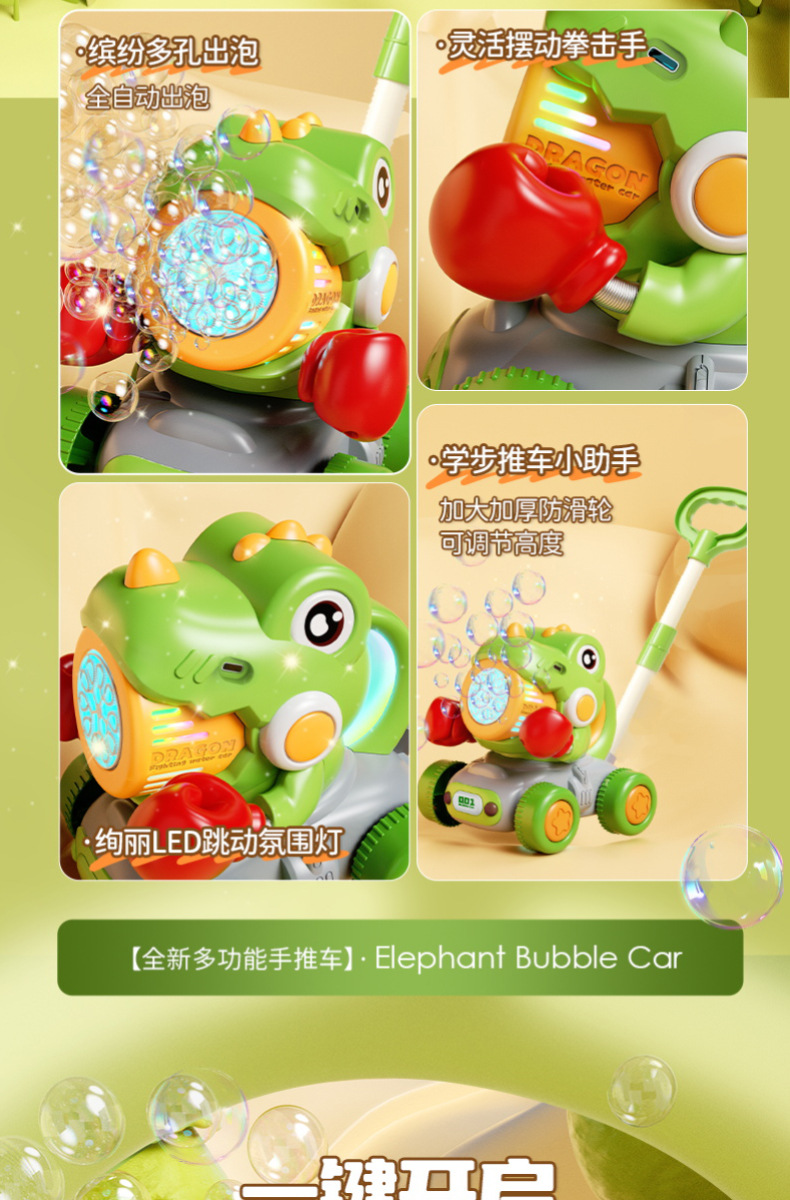 宝宝新年玩具0-3学走路儿童四轮手推卡通泡泡车电动泡泡机全自动