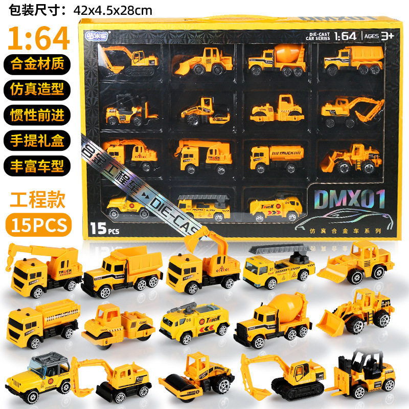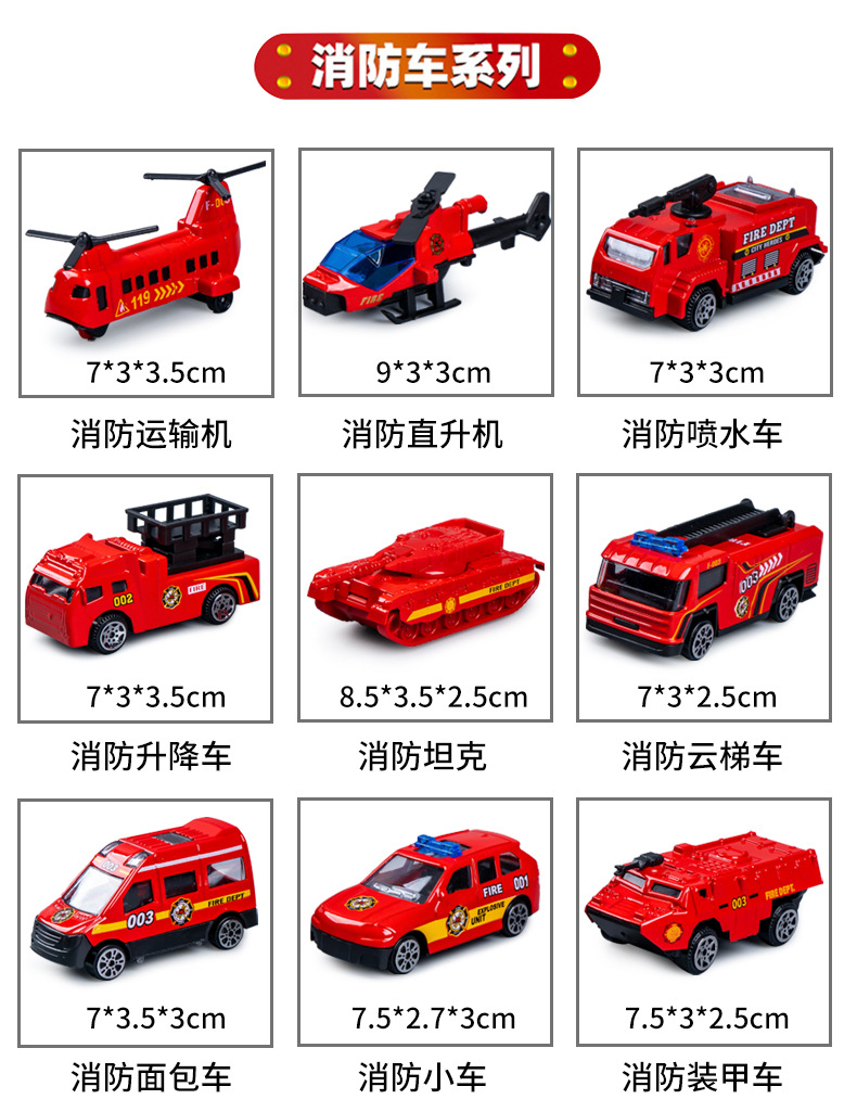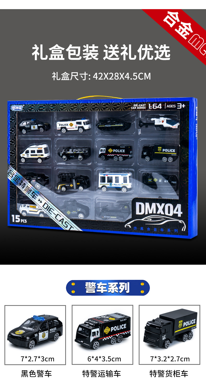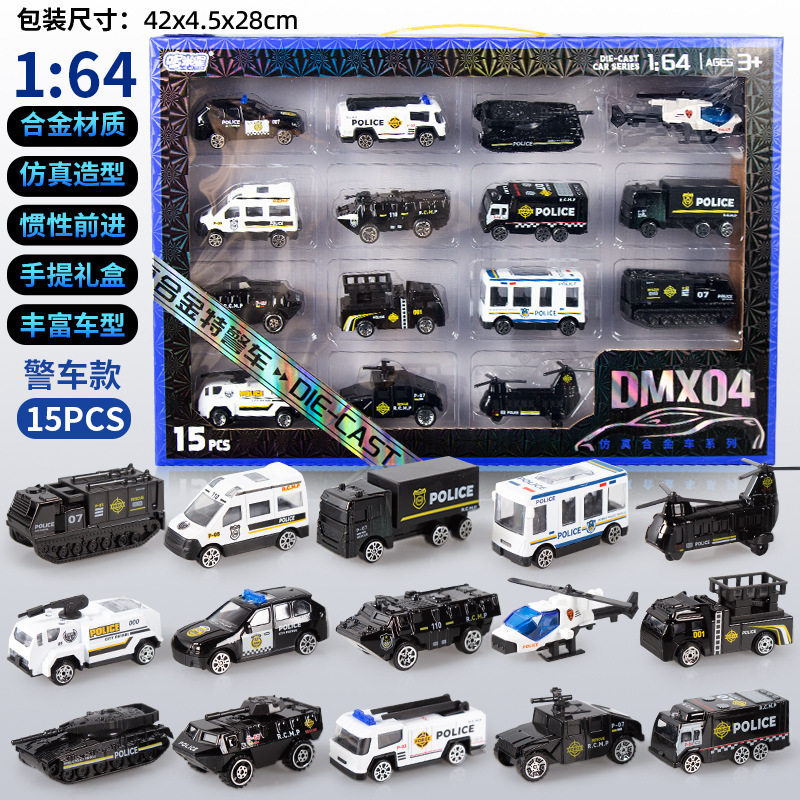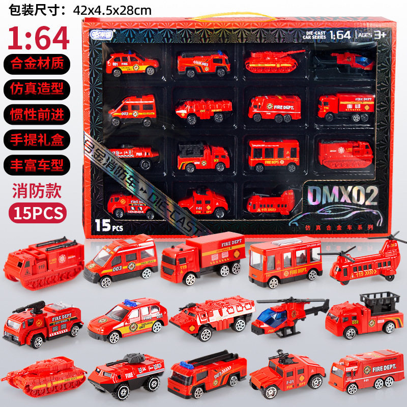 合金仿真挖掘机消防车模型惯性行驶特警车男孩套装礼盒工程车玩具