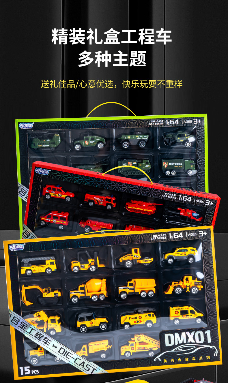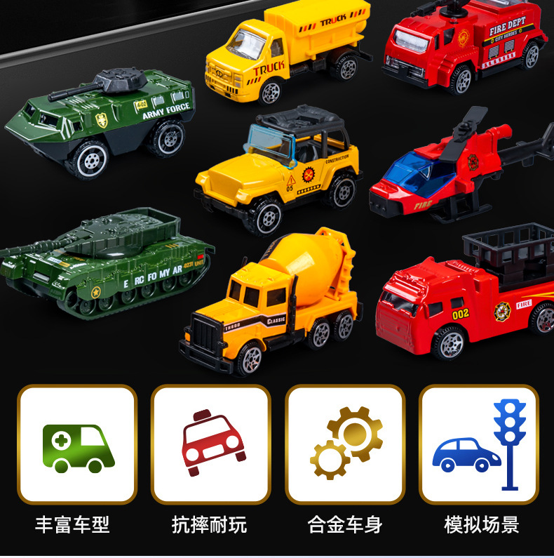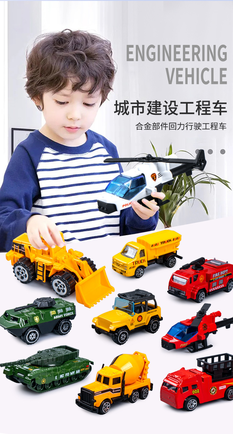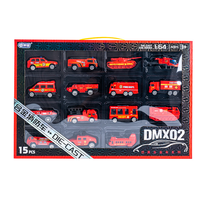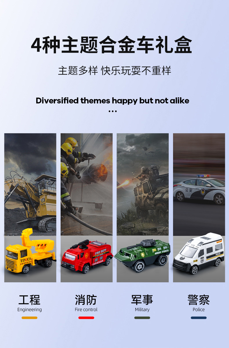 合金仿真挖掘机消防车模型惯性行驶特警车男孩套装礼盒工程车玩具