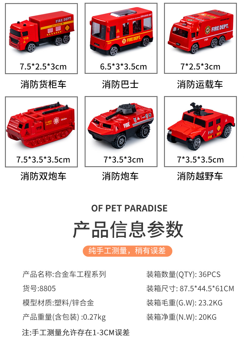 合金仿真挖掘机消防车模型惯性行驶特警车男孩套装礼盒工程车玩具 投诉