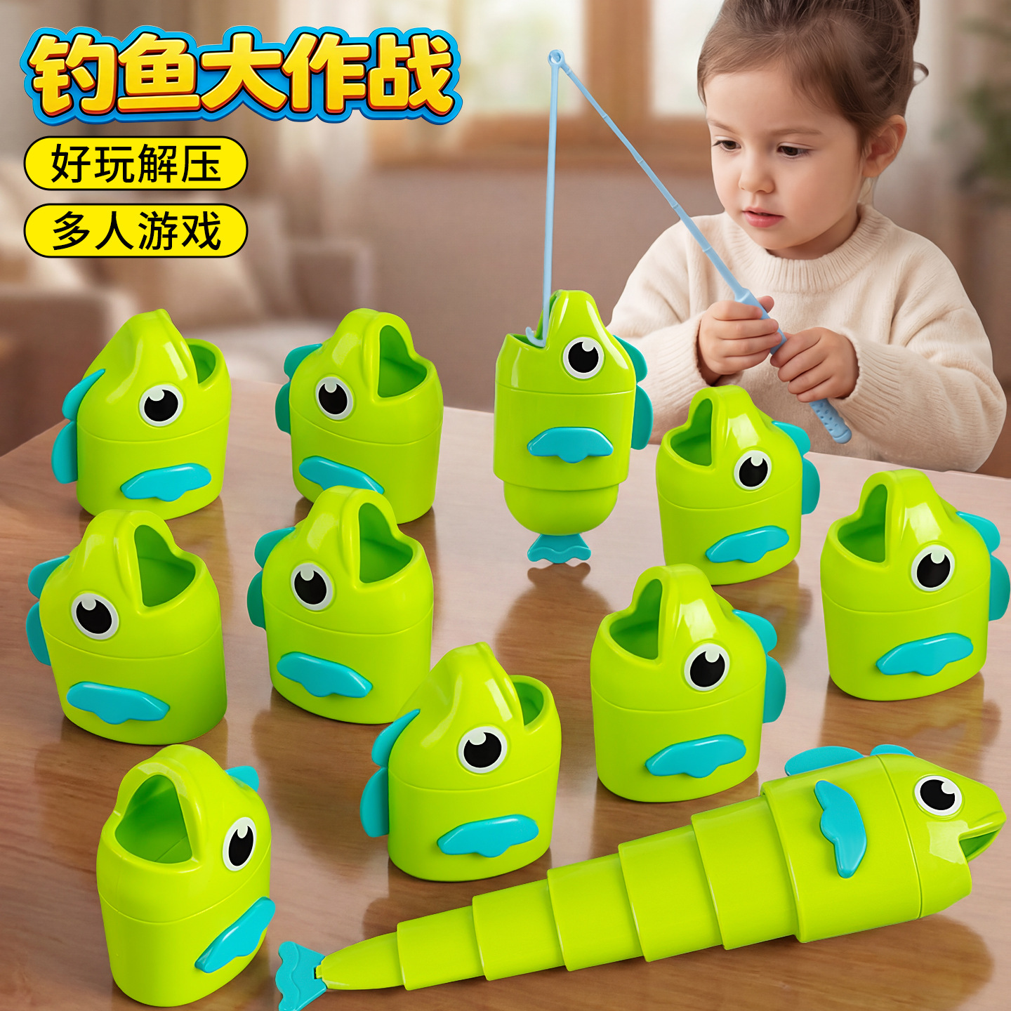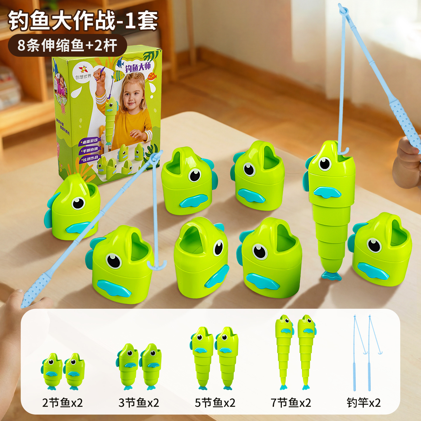 网红爆款钓鱼大师亲子互动伸缩钓鱼大作战幼儿园益智钓鱼玩具儿童
