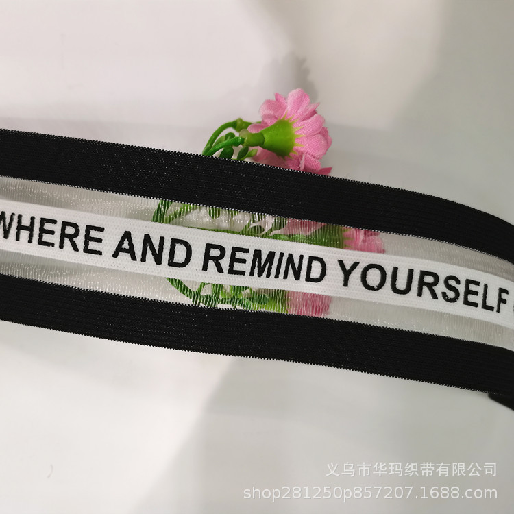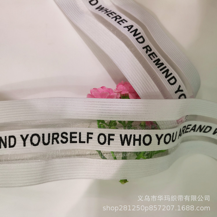 现货3排鱼丝印刷英文松紧带