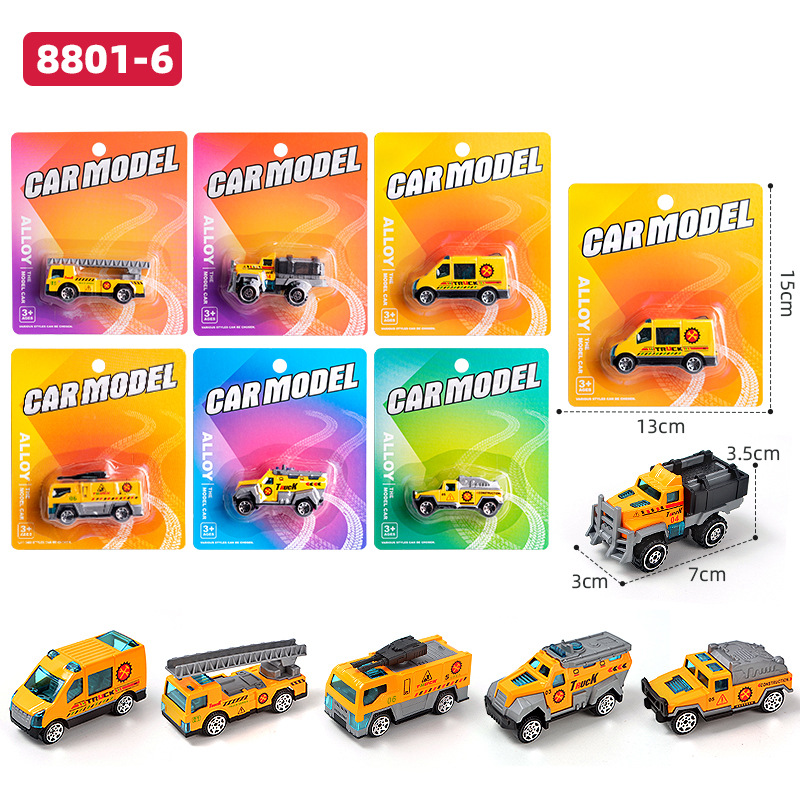 儿童合金玩具滑行赛车仿真小汽车模型工程车警车军事消防吸板片装