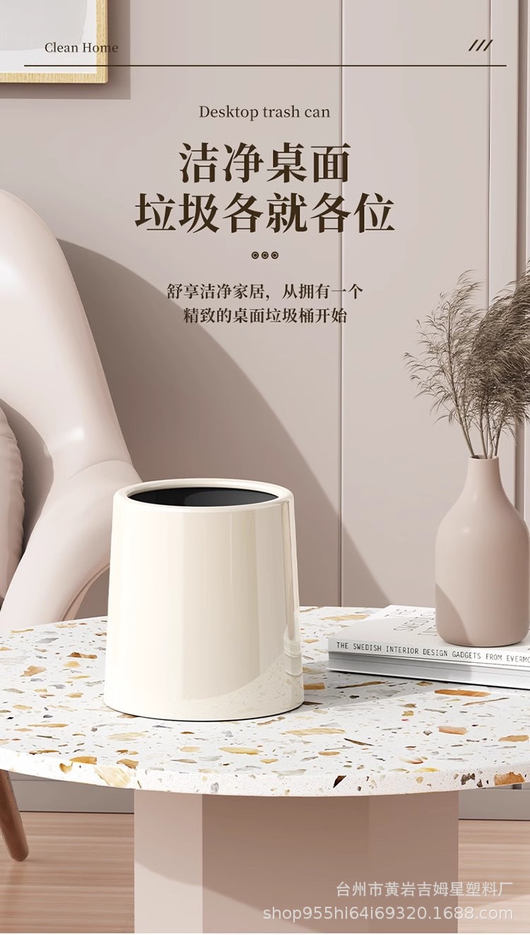 桌面垃圾桶高颜值家用卧室宿舍北欧风网红收纳桶小号办公桌上纸篓 English | 投诉