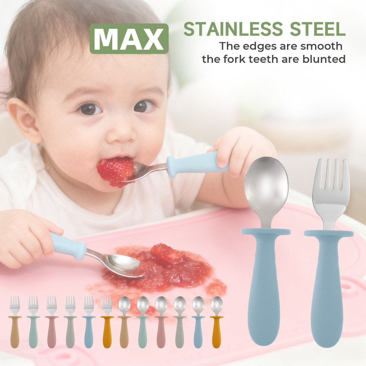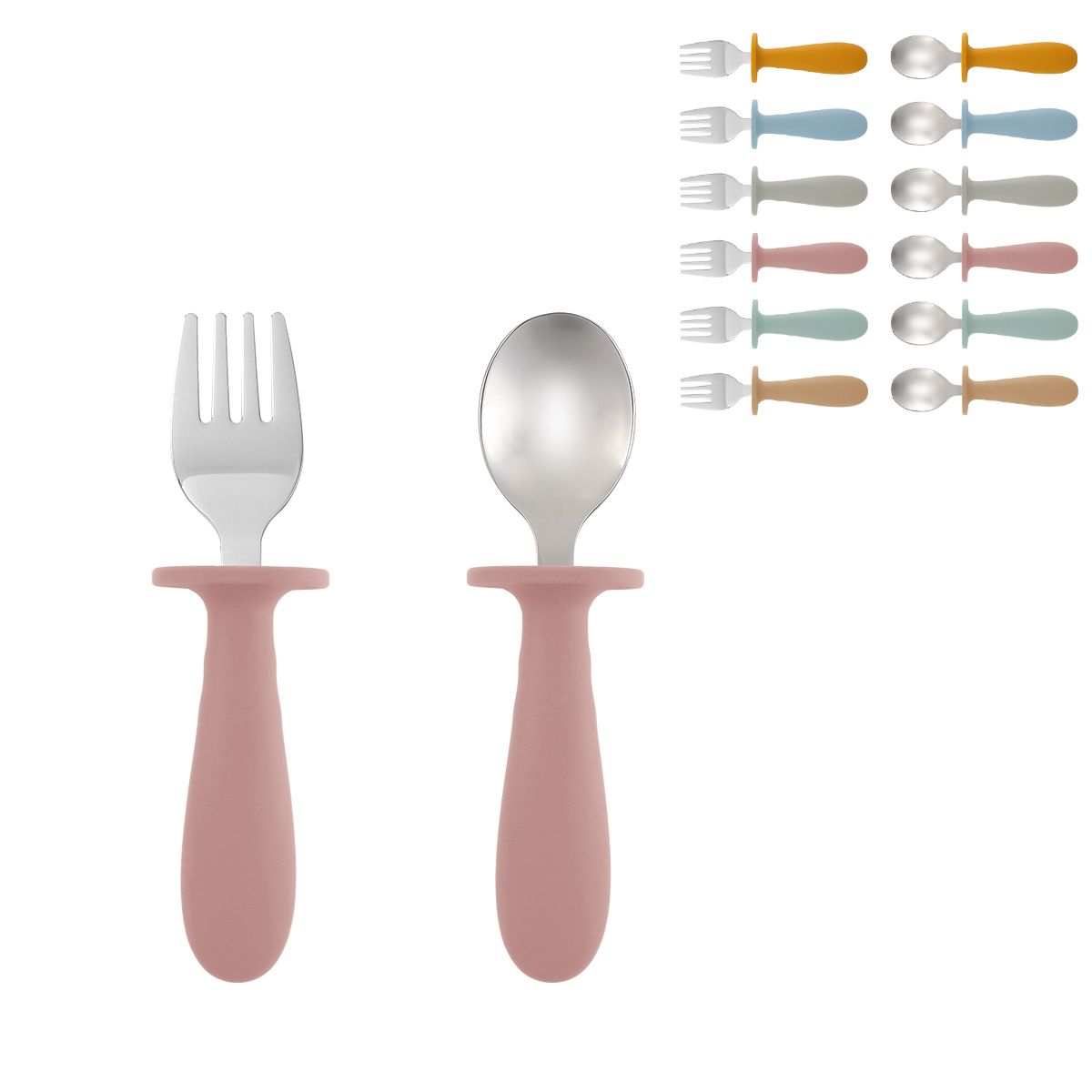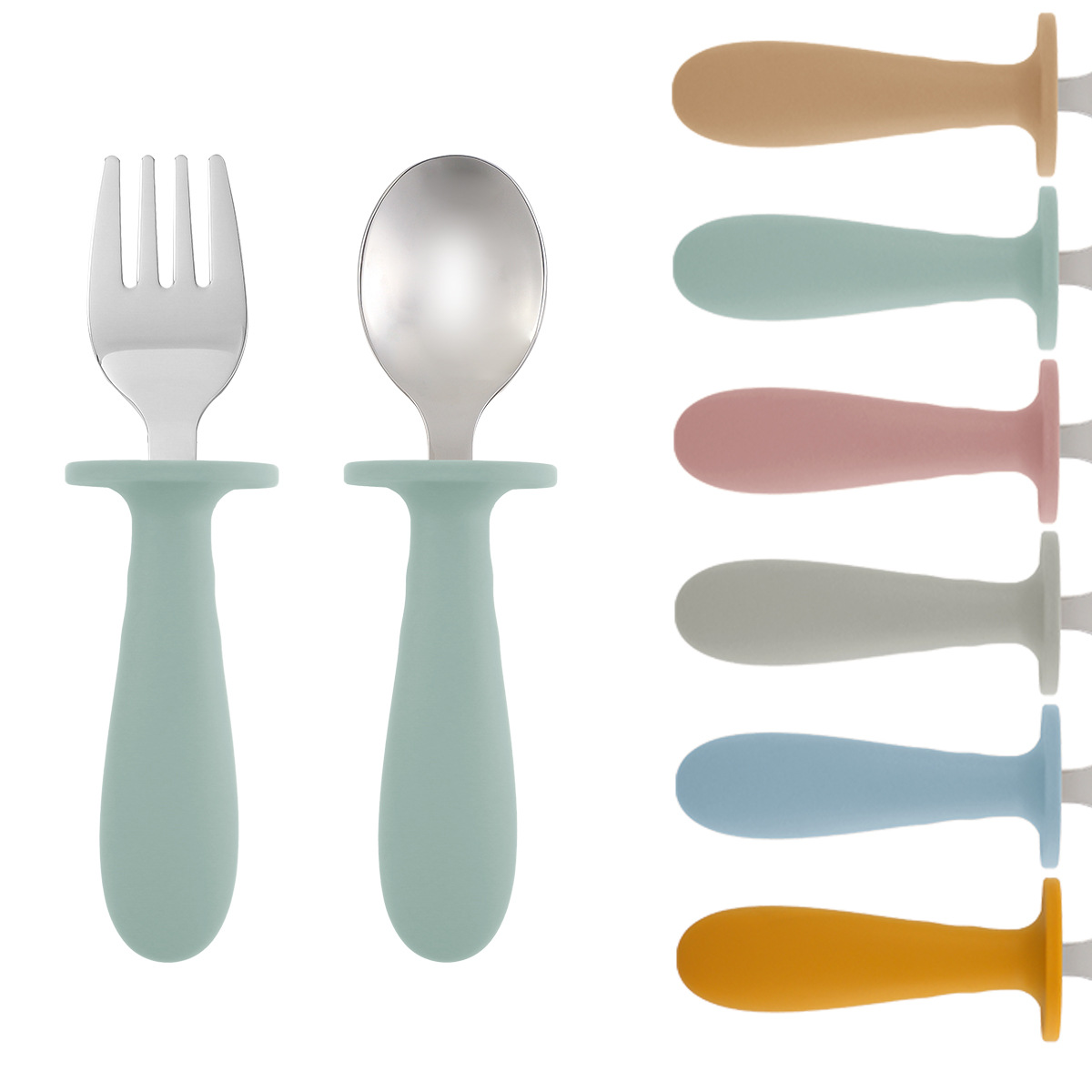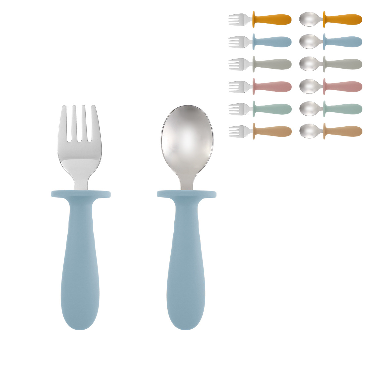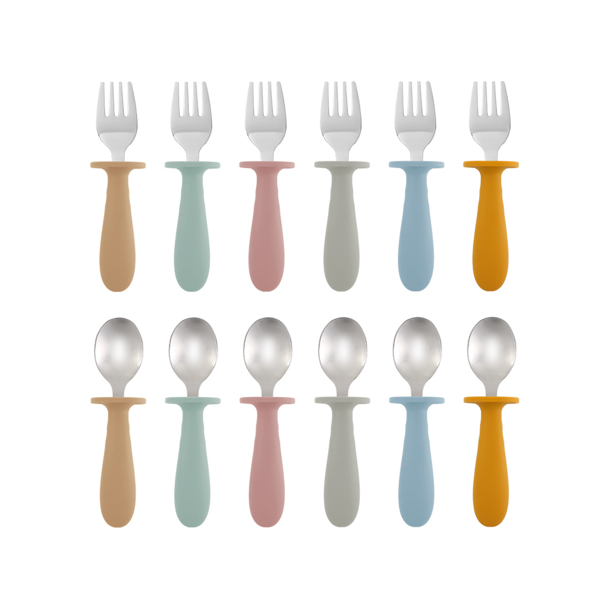 儿童餐具叉勺便携式304不锈钢创意圆柄宝宝吃饭训练喂养勺子叉子
