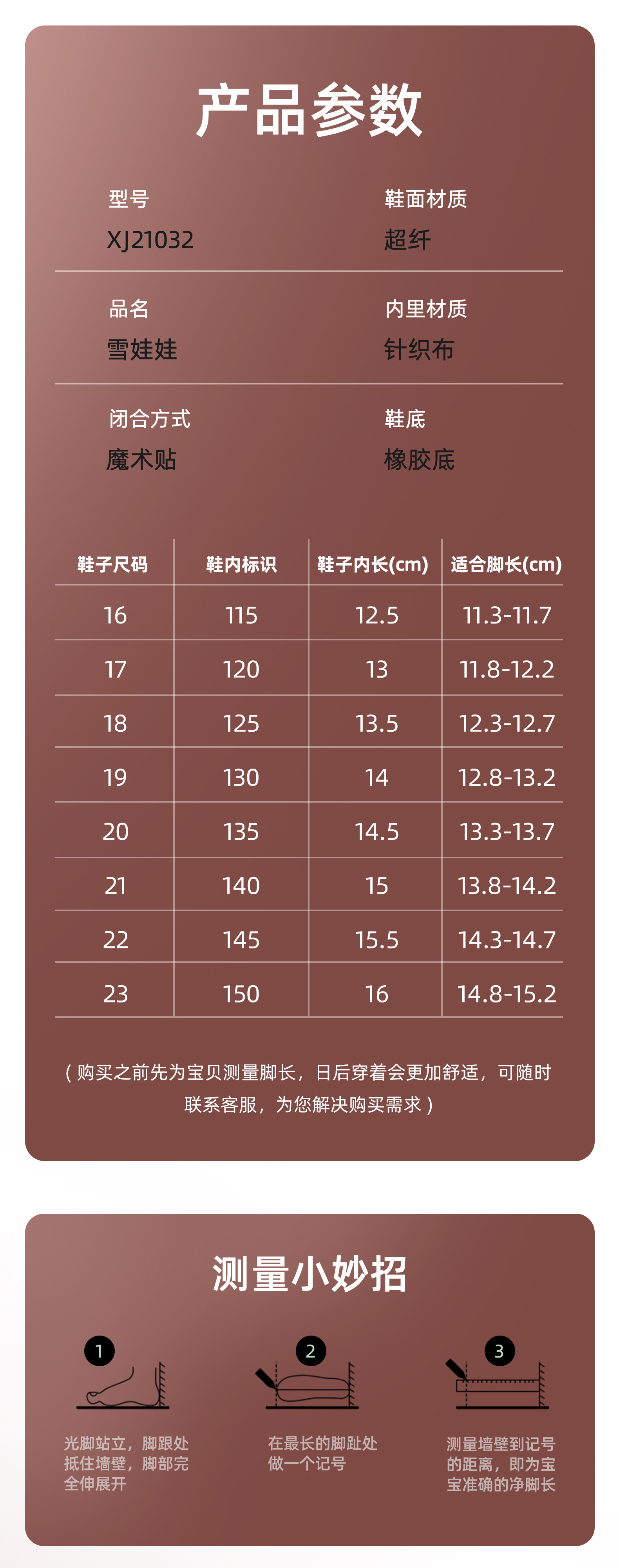 | 22码(参考脚长14.8-15.2cm) | ¥0 | 36双可售 |
