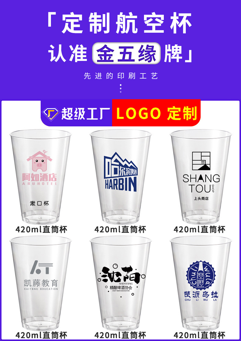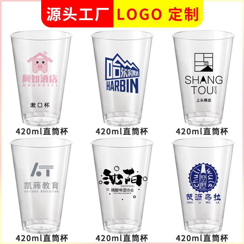 420ml一次性航空杯带盖子硬塑料杯饮料杯广告杯加厚大啤酒杯批发 English | 投诉