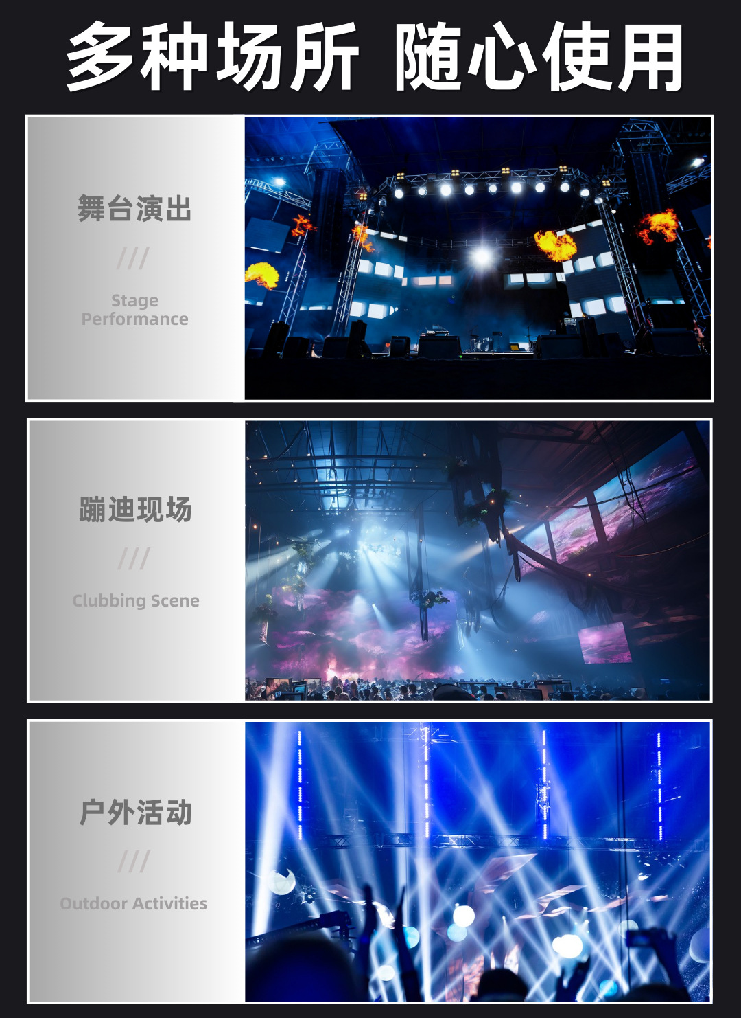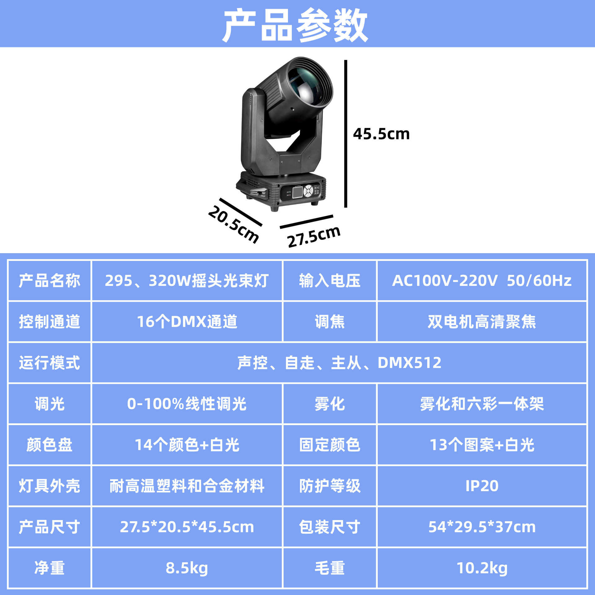 运行模式:声控,自走,主从,DMX512