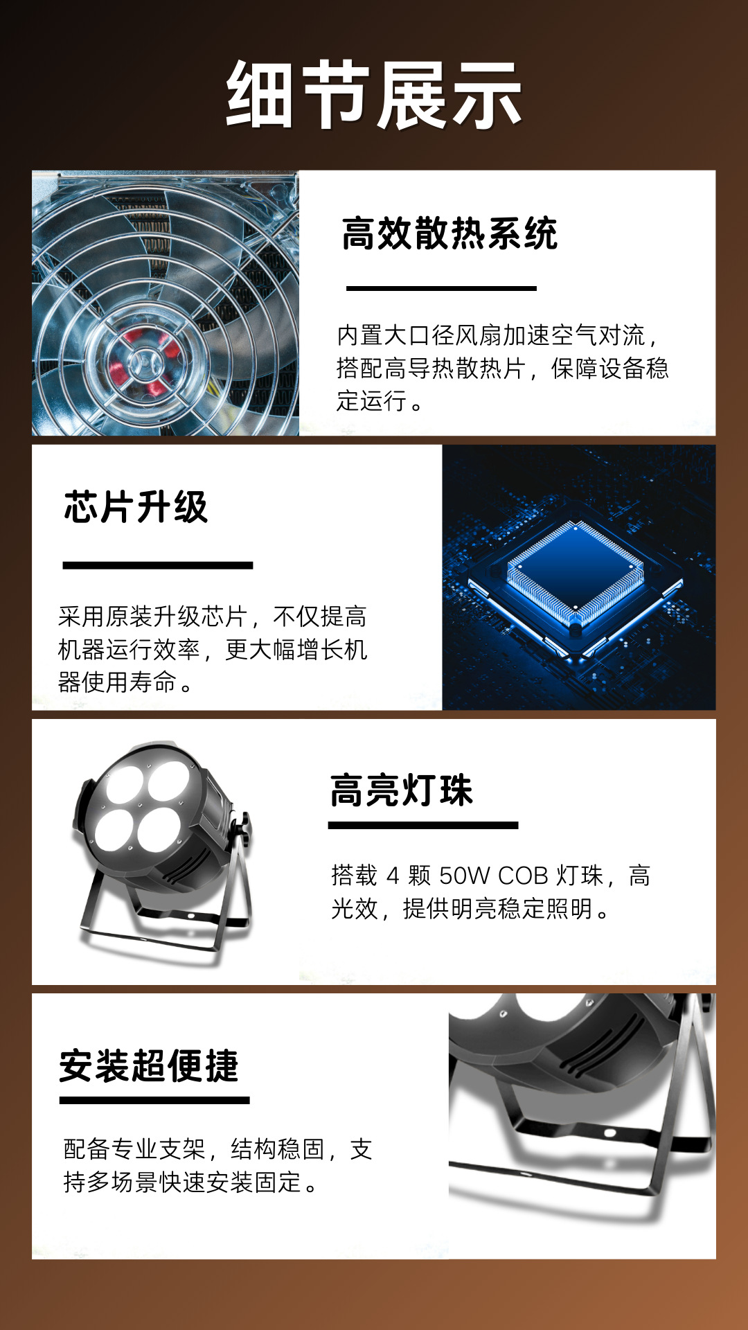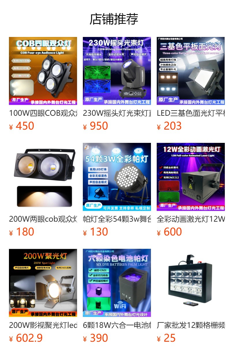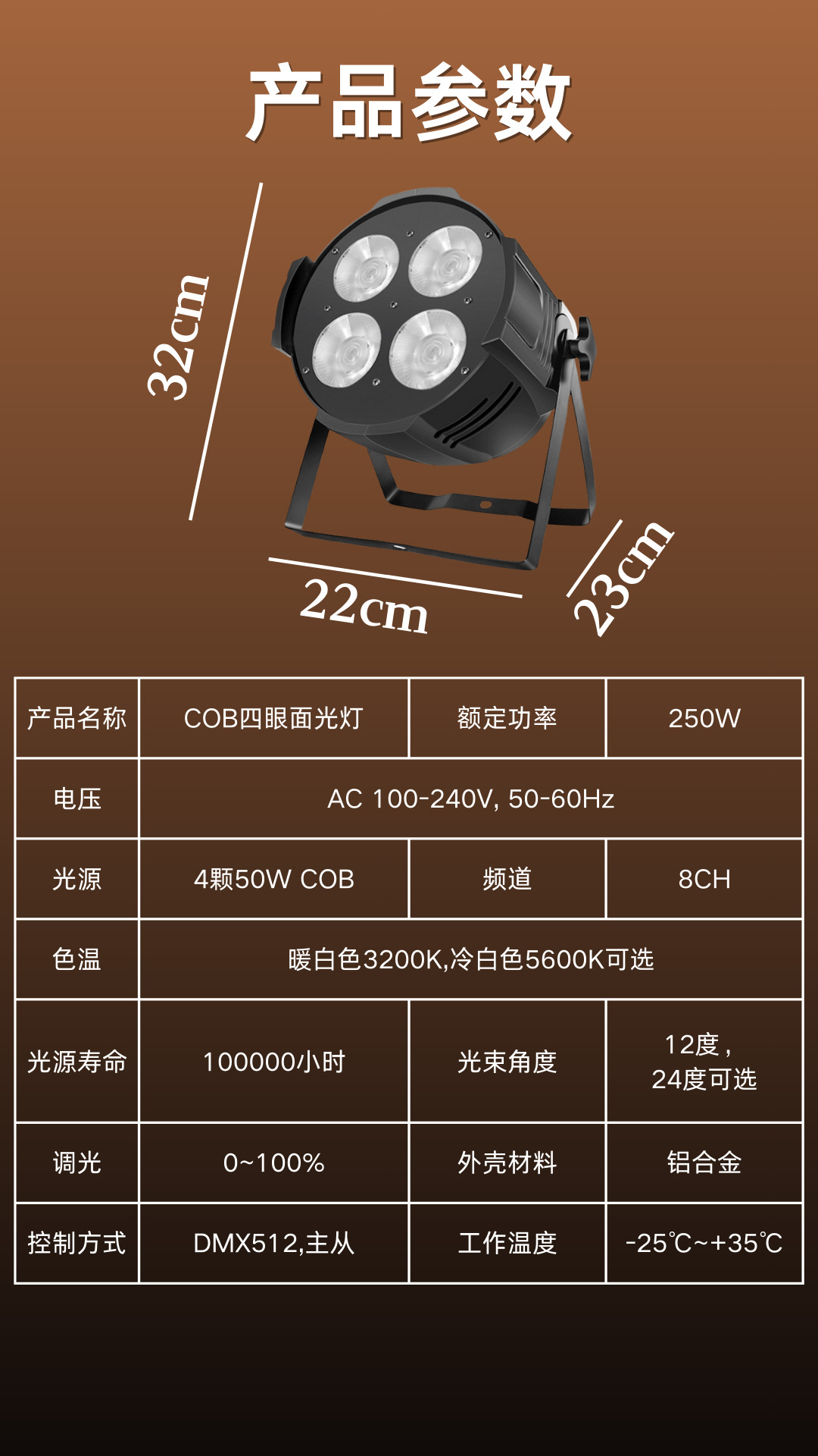 光源:4个50W COB