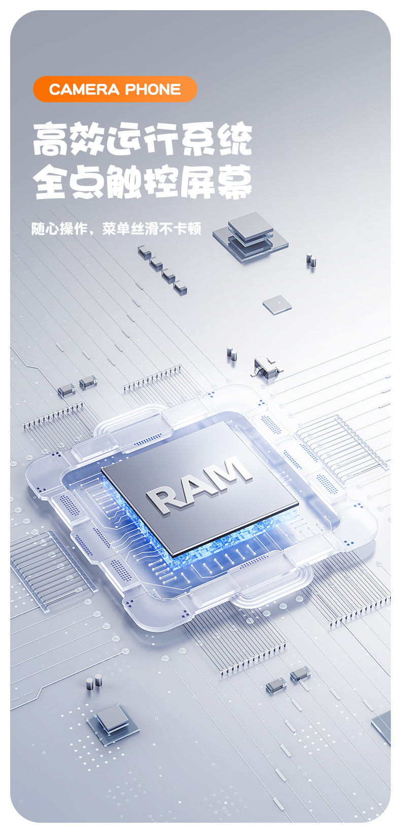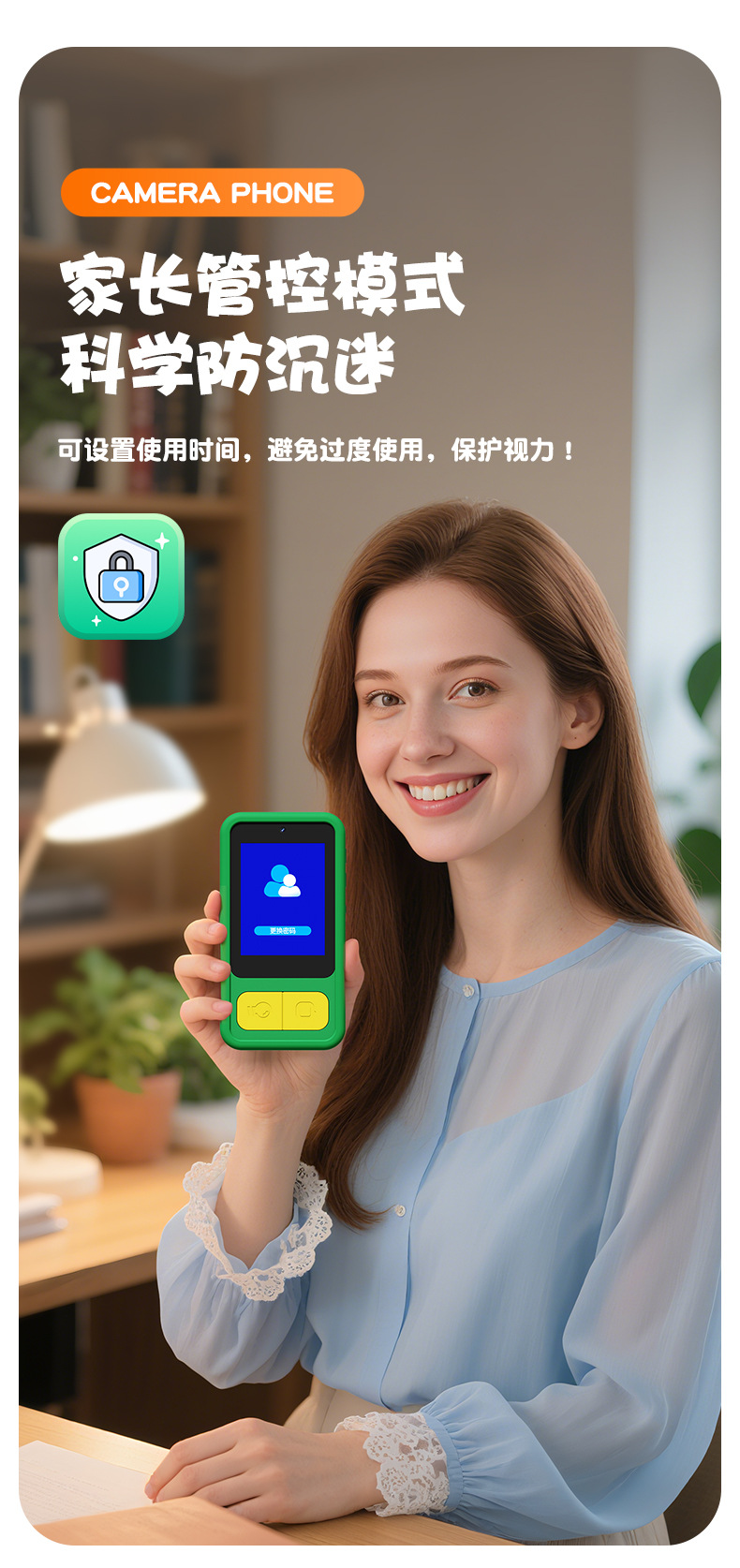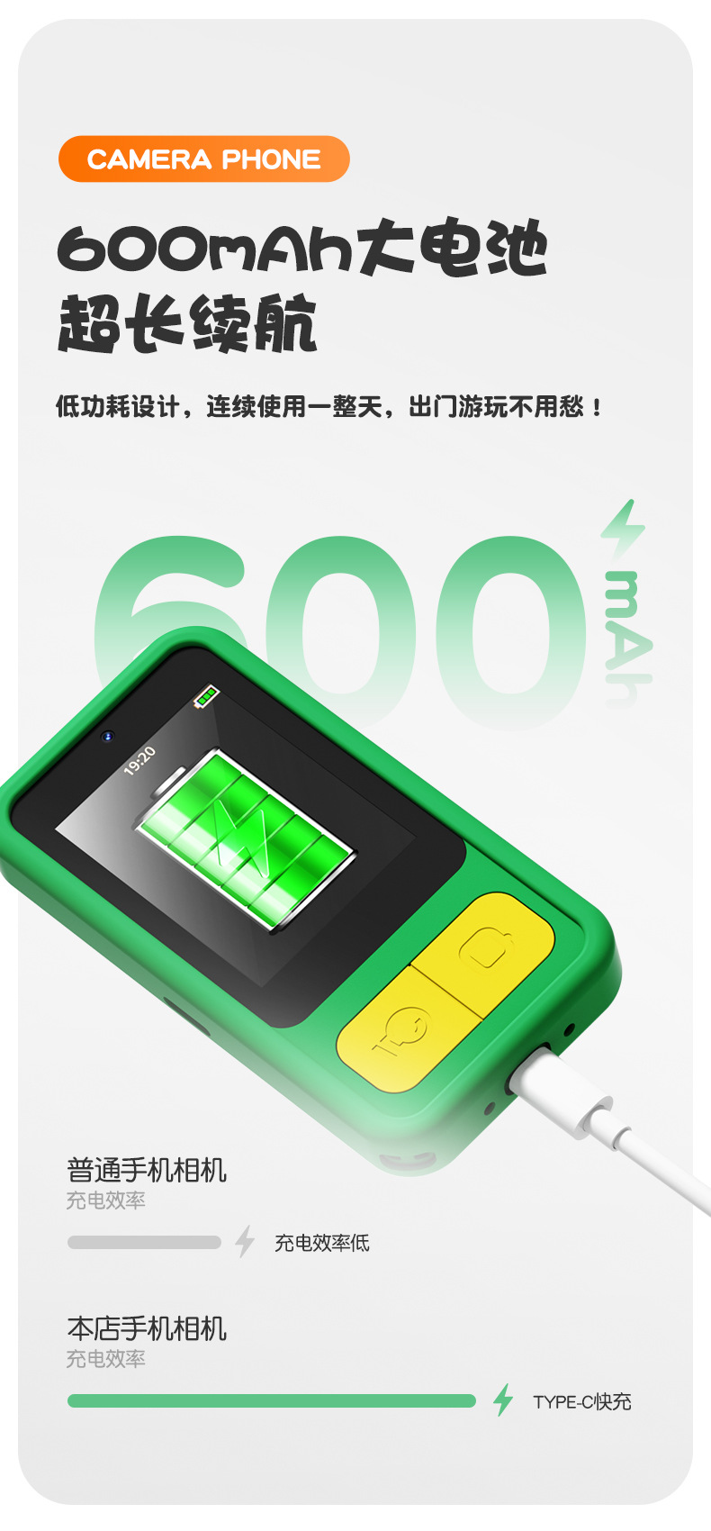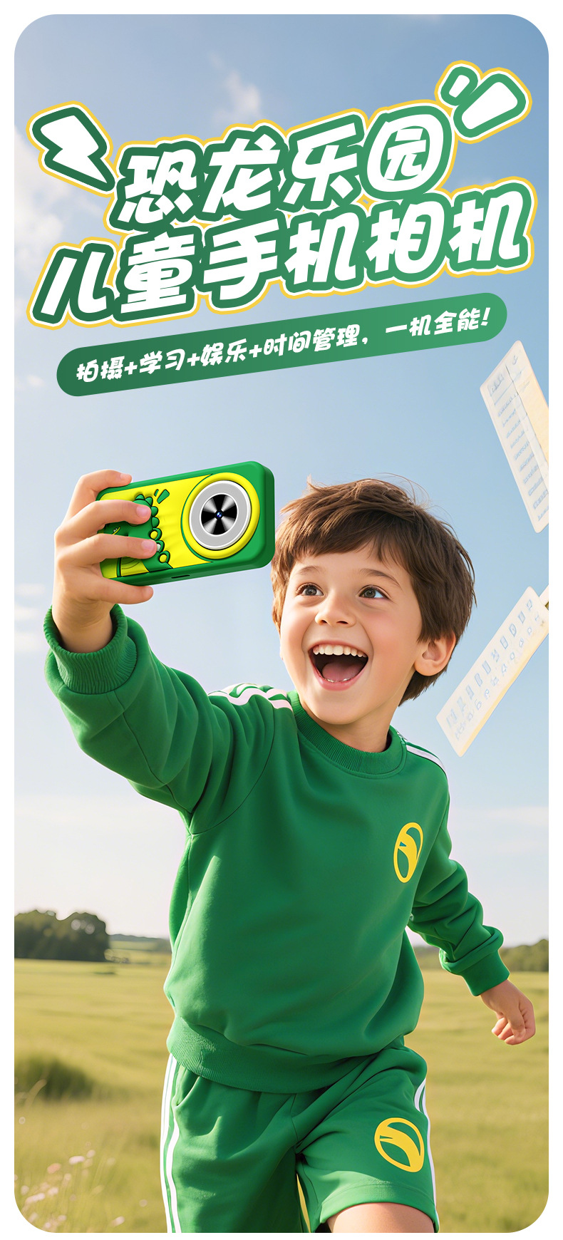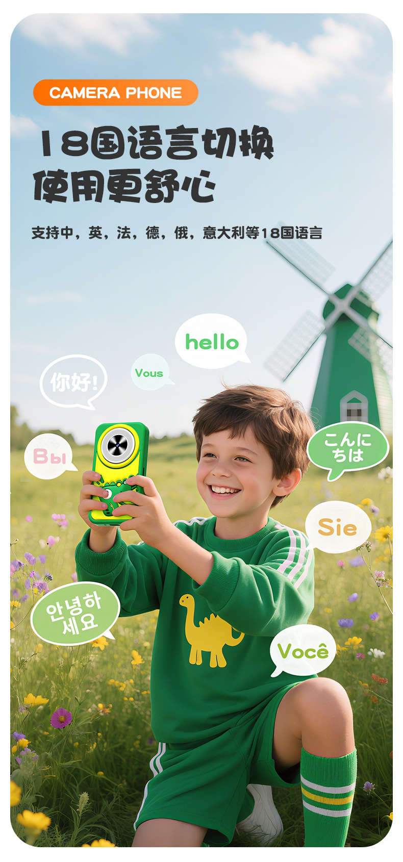全贴合总成,全点触控,操作流畅灵敏,前后双摄真实100万像素,插值4800万,9颗灯珠导光条三档有效照明补光,还原物体真实色彩,24M内置运行内存远超同行,内置20+小游戏。经典恐龙精致高品质立体硅胶套,真实IPS高清屏(同行大多用TN屏 像素偏黄)拍照录像20倍变焦(同行8倍)
