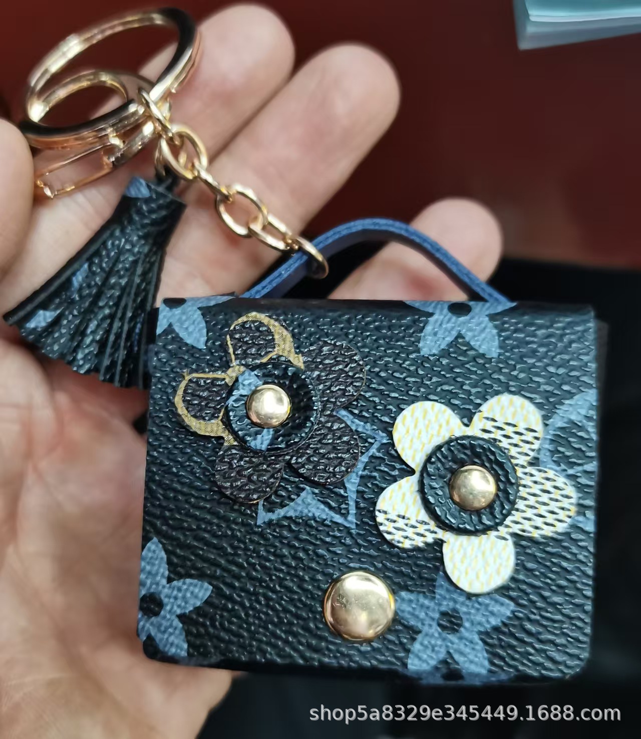 跨境新款时尚皮革耳机包太阳花钥匙扣包挂件迷你零钱包创意礼品 投诉