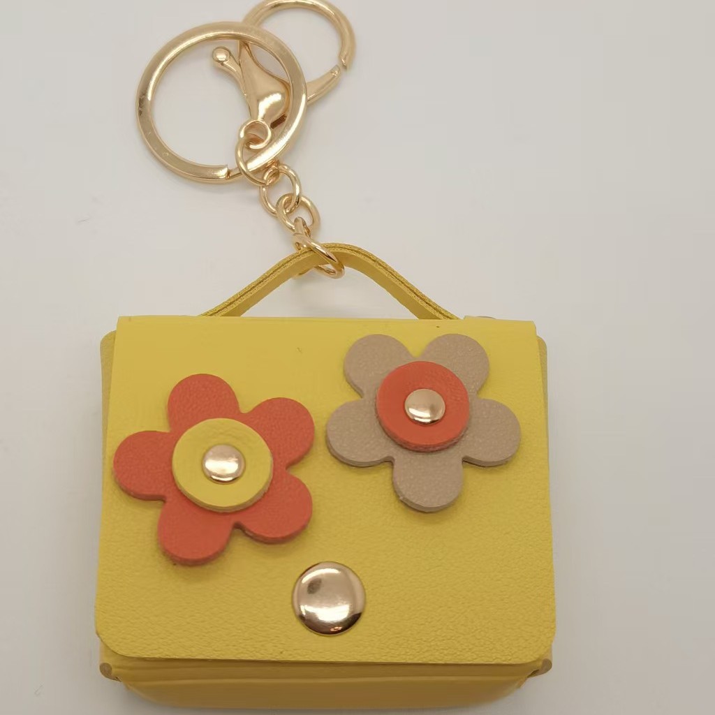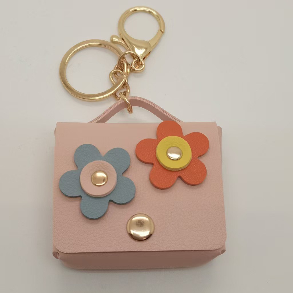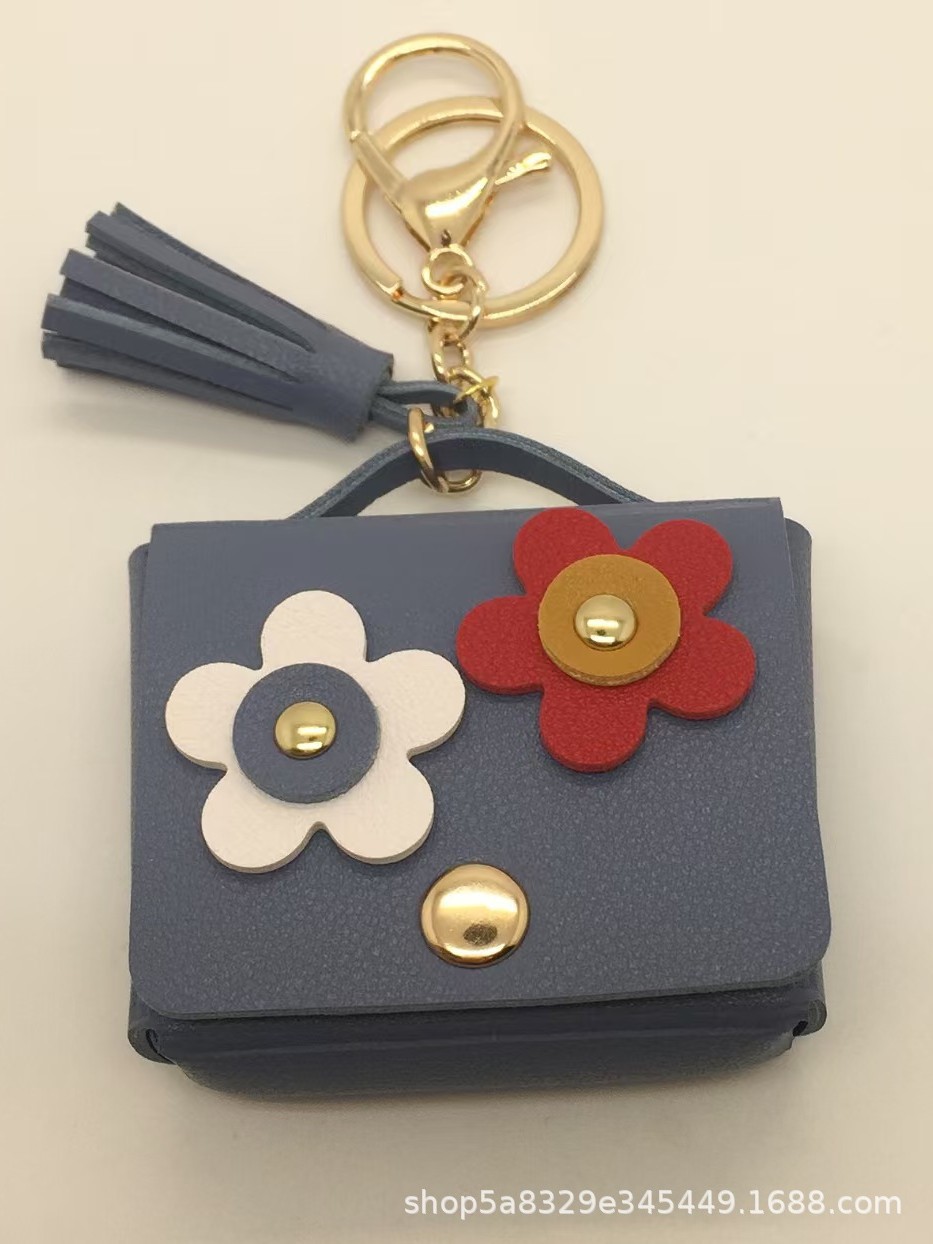 跨境新款时尚皮革耳机包太阳花钥匙扣包挂件迷你零钱包创意礼品