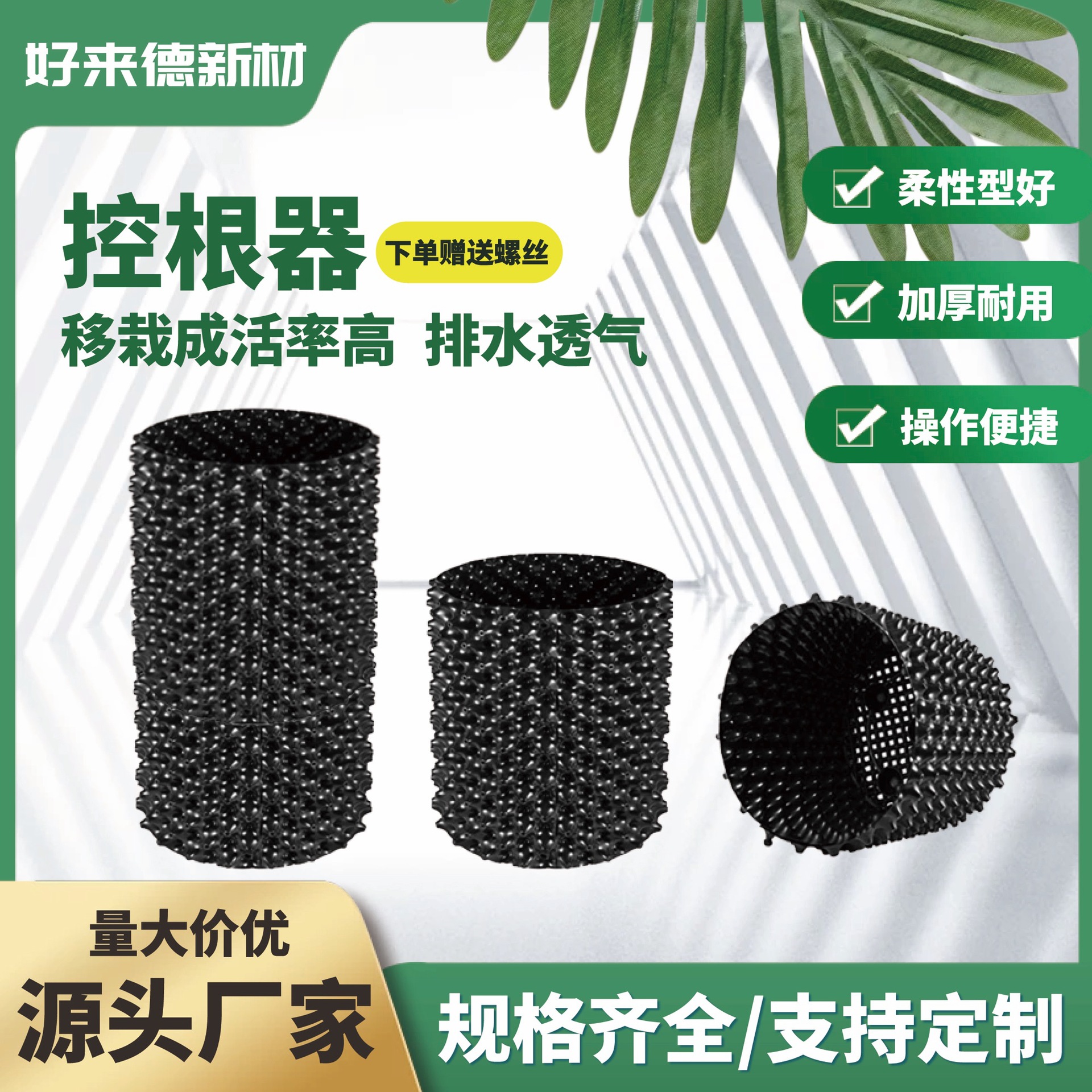 材质: 塑料原料 特性: 不易变形,耐腐蚀,牢固耐用 类型: 控根器专用螺丝 品牌: 好来德HORIDO 使用形式: 组合式 应用场景: 绿化工程,家庭园艺,阳台菜园,花圃苗圃生 工艺: 注塑 是否进口: 否 风格: 简约 颜色: 黑色 尺寸: 高度40cm 长度50米 主要下游平台: ebay,亚马逊,wish,速卖通,独立 主要销售地区: 非洲,欧洲,南美,东南亚,北美,东北亚, 有可授权的自有品牌: 是 是否跨境出口专供货源: 是