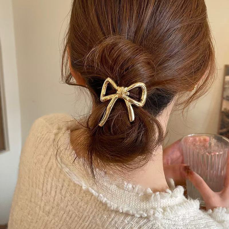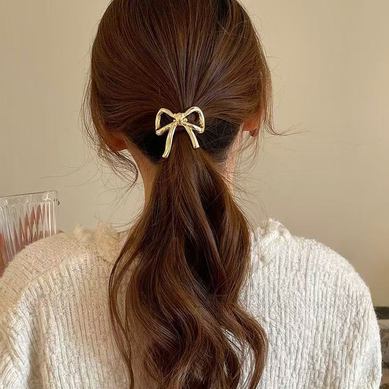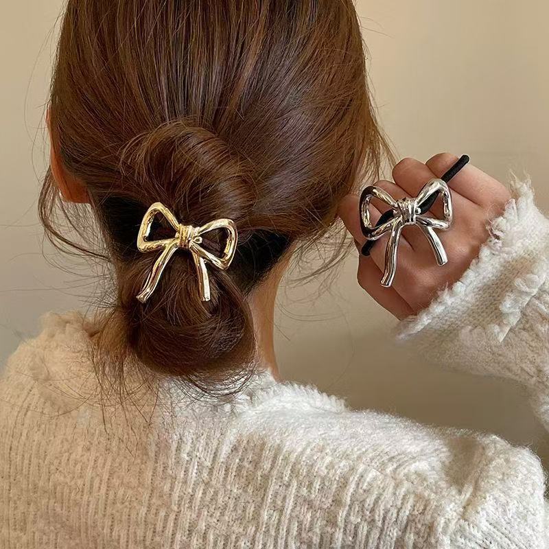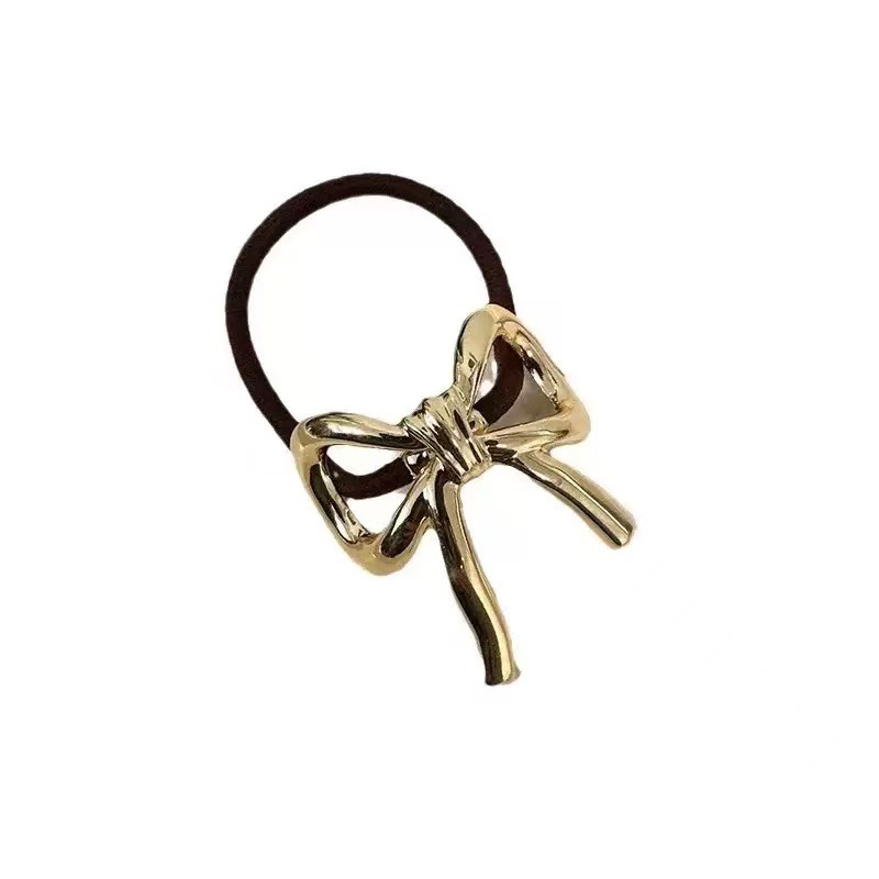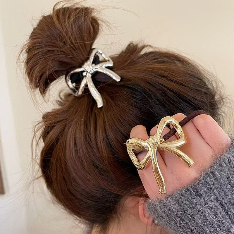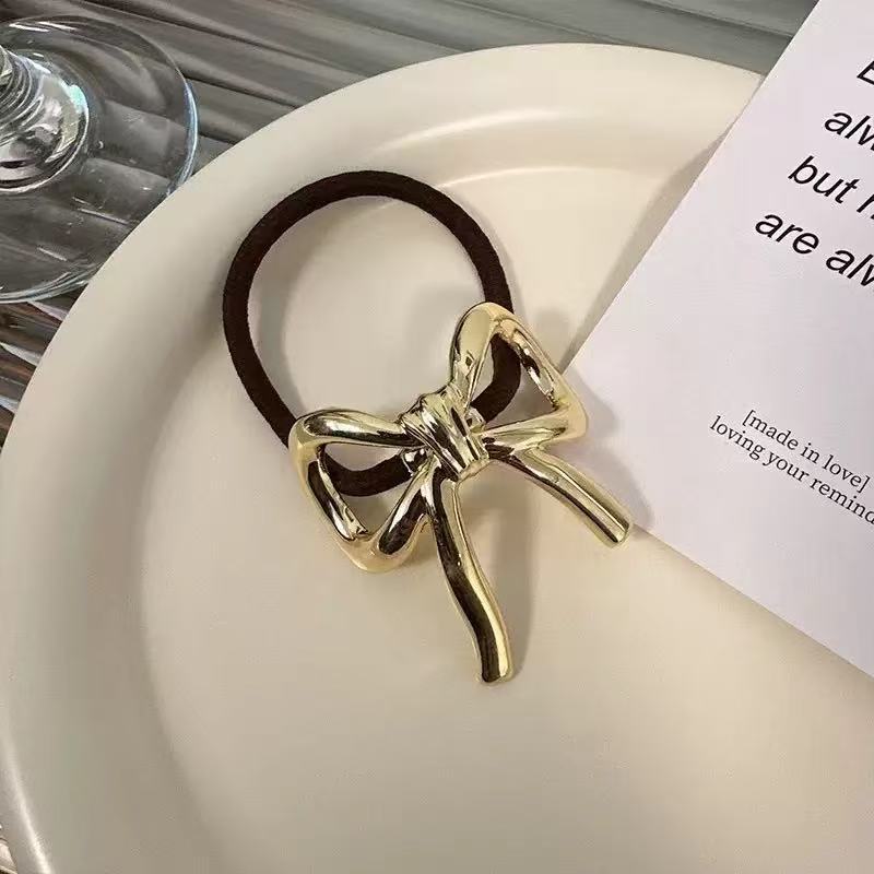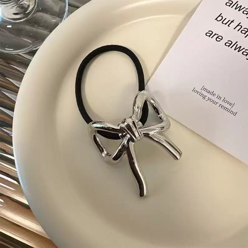 简约金属蝴蝶结发圈高弹力耐用高马尾头绳不伤发橡皮筋女扎头发绳