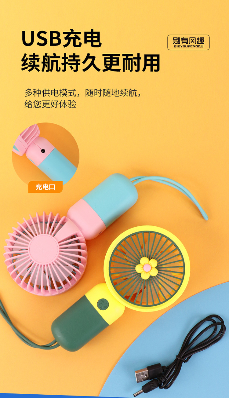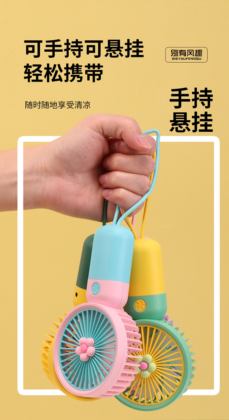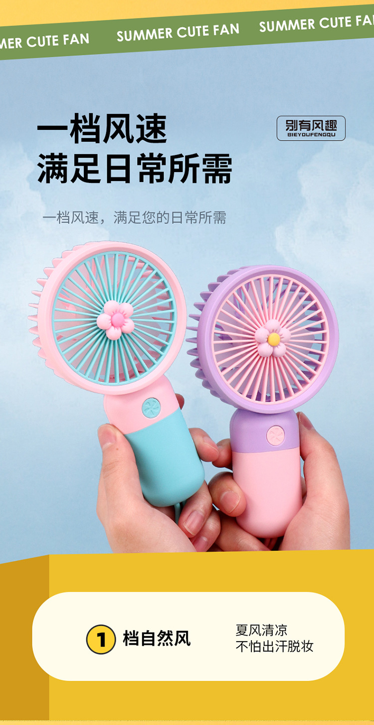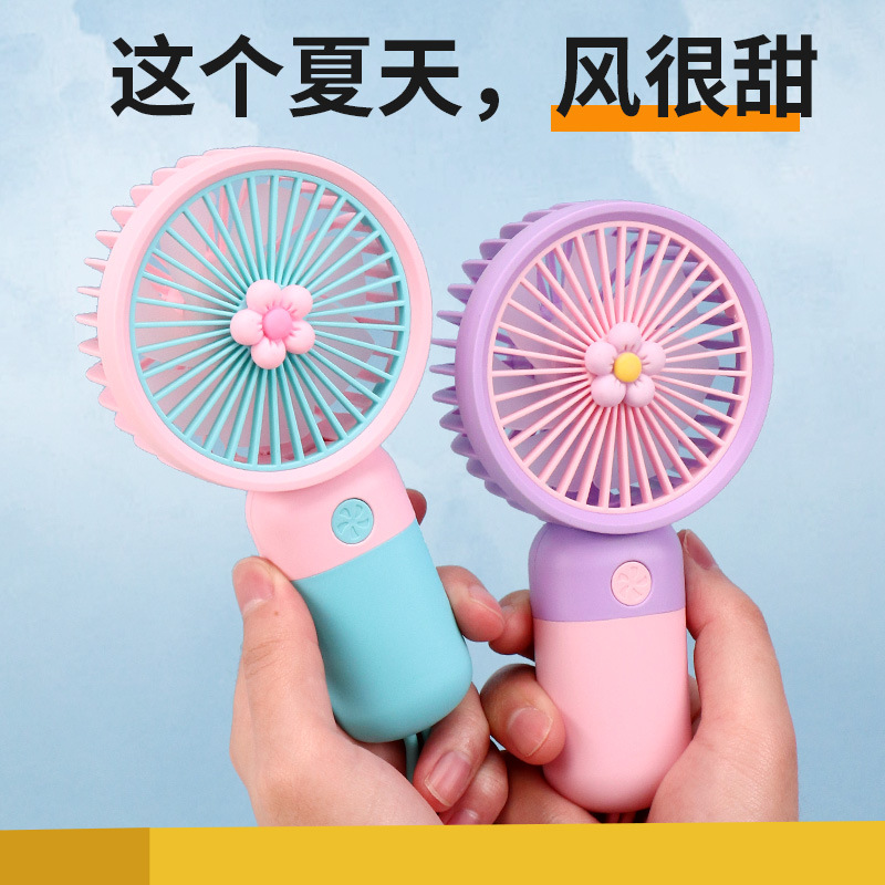 迷你花朵手持吊绳小风扇usb充电便携静音办公学生礼品电风扇小型