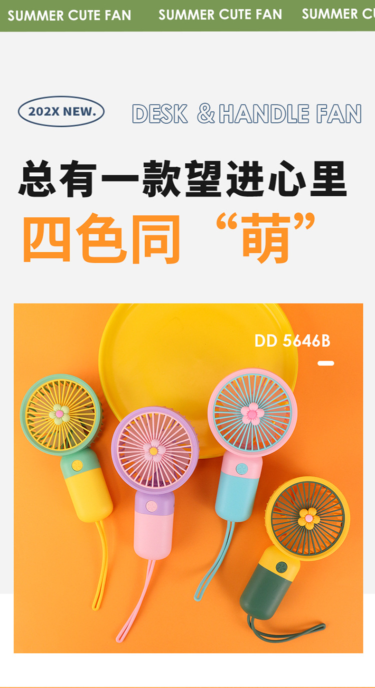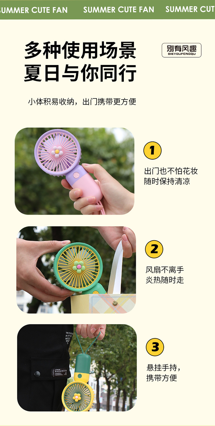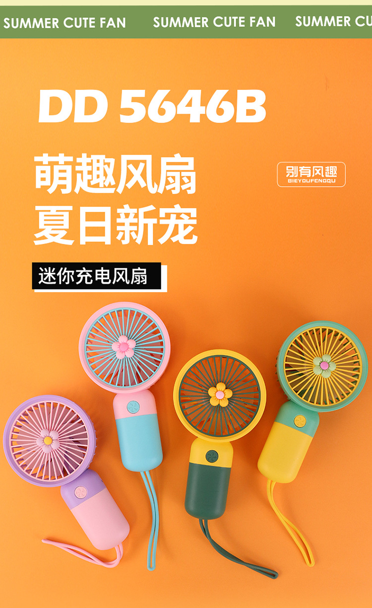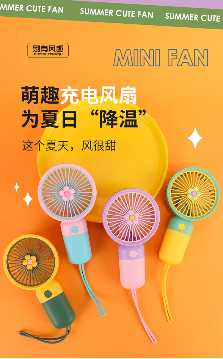 迷你花朵手持吊绳小风扇usb充电便携静音办公学生礼品电风扇小型