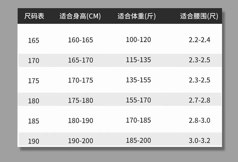 | 180-建议【140-160斤】 | ¥6600 | 883套可售 |
