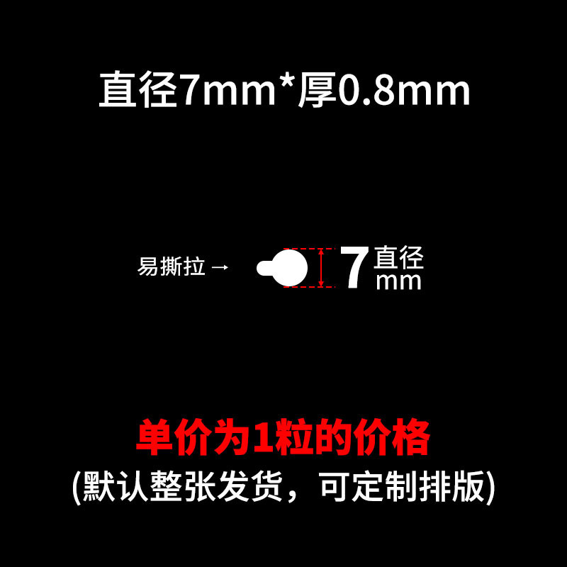 买家须知:本链接SKU都是单粒的价格,可支持定制任意尺寸厚度,可按要求排版,底纸可搭配白纸或者透明底,出货要求可半断 全断 整版 整包出货!量大价优,详情咨询客服!!!点胶,亚克力双面胶,圆点胶,无痕胶,纳米胶,布基胶带,网格双面胶,春联双面胶