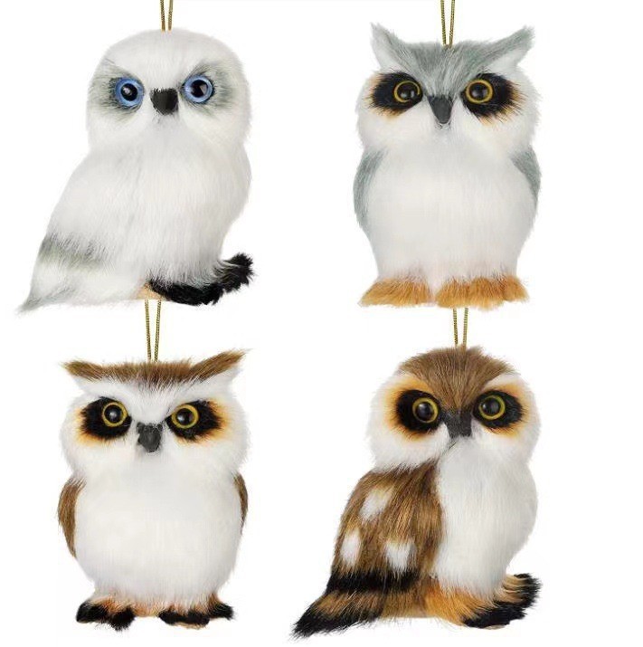 仿真猫头鹰摆件毛绒仿真动物猫头鹰圣诞装饰品挂件礼品