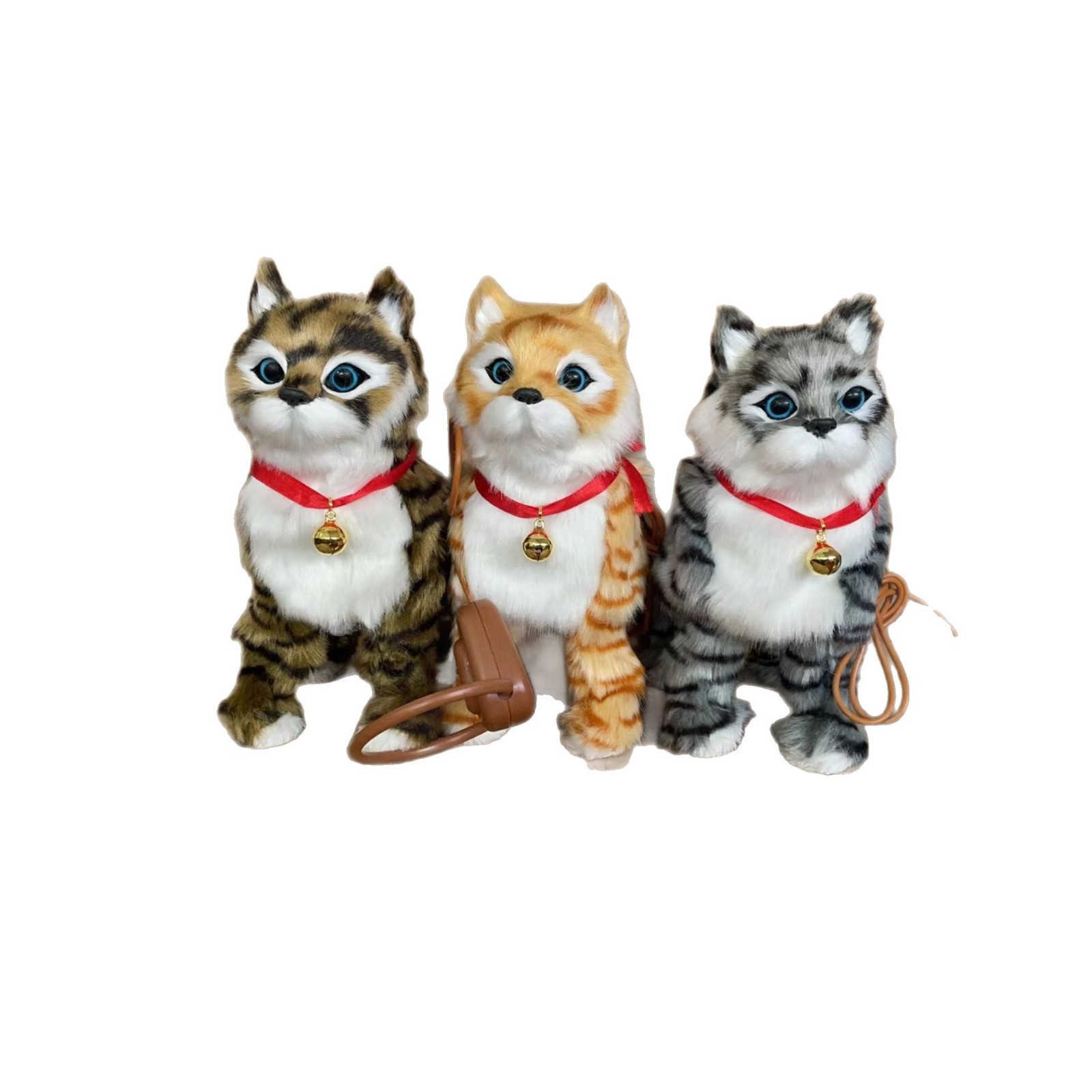 仿真牵绳猫点头摇尾巴走路会叫带音乐毛绒电动玩具走路猫