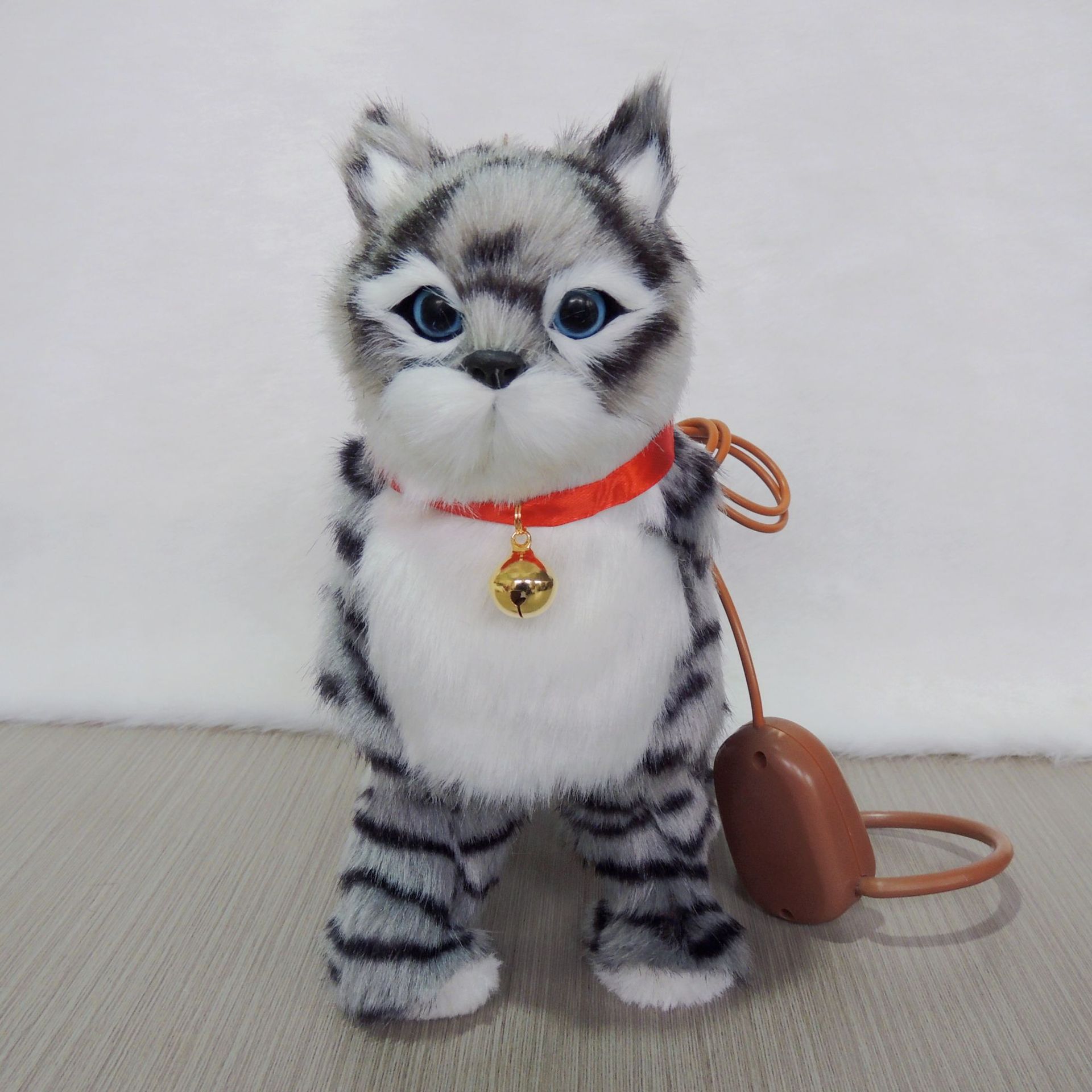 仿真牵绳猫点头摇尾巴走路会叫带音乐毛绒电动玩具走路猫 投诉